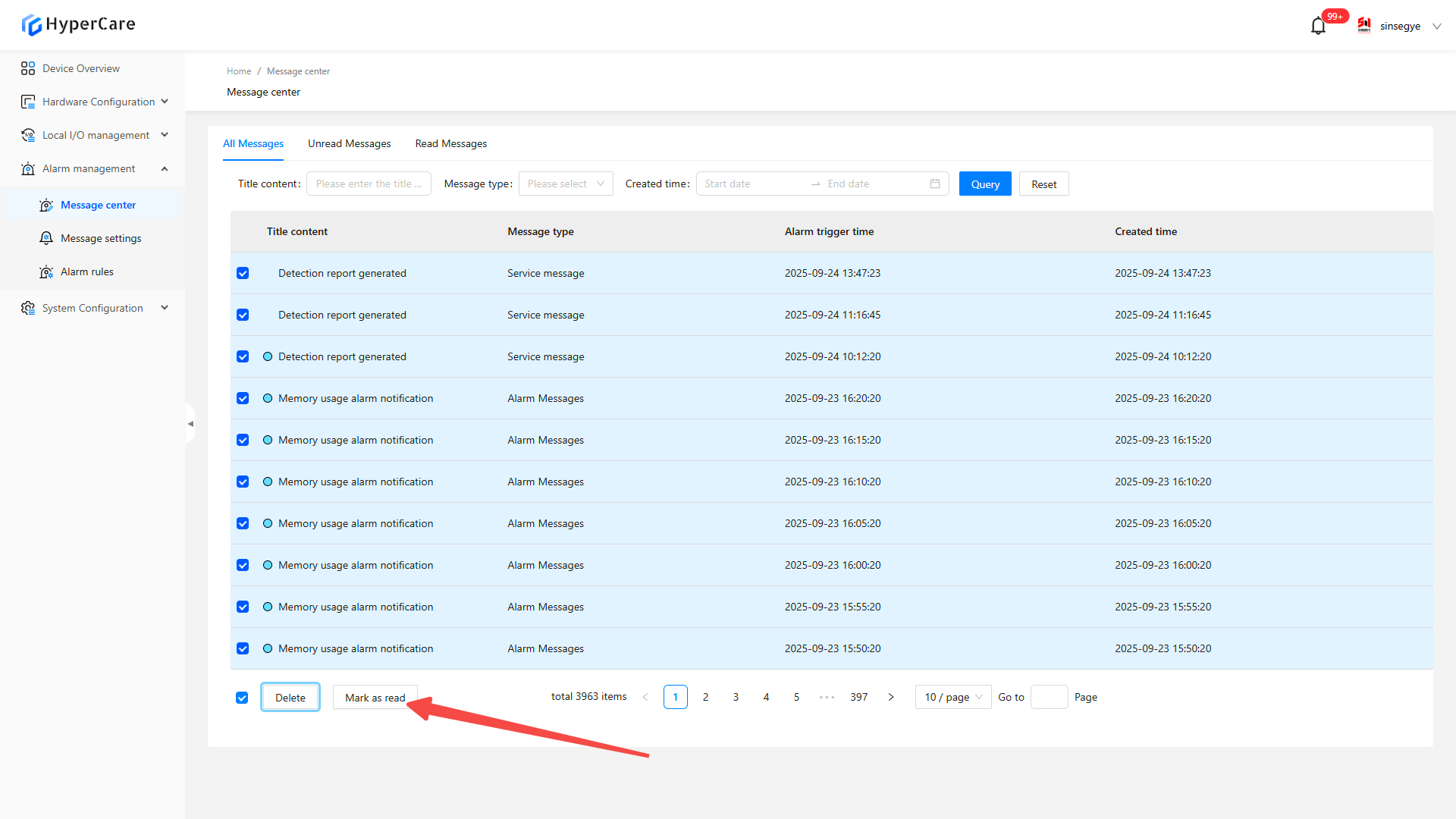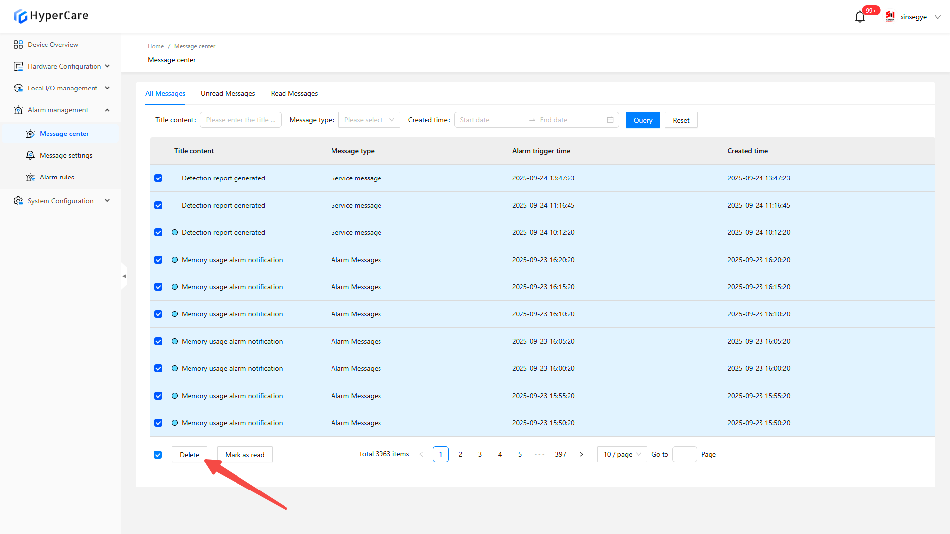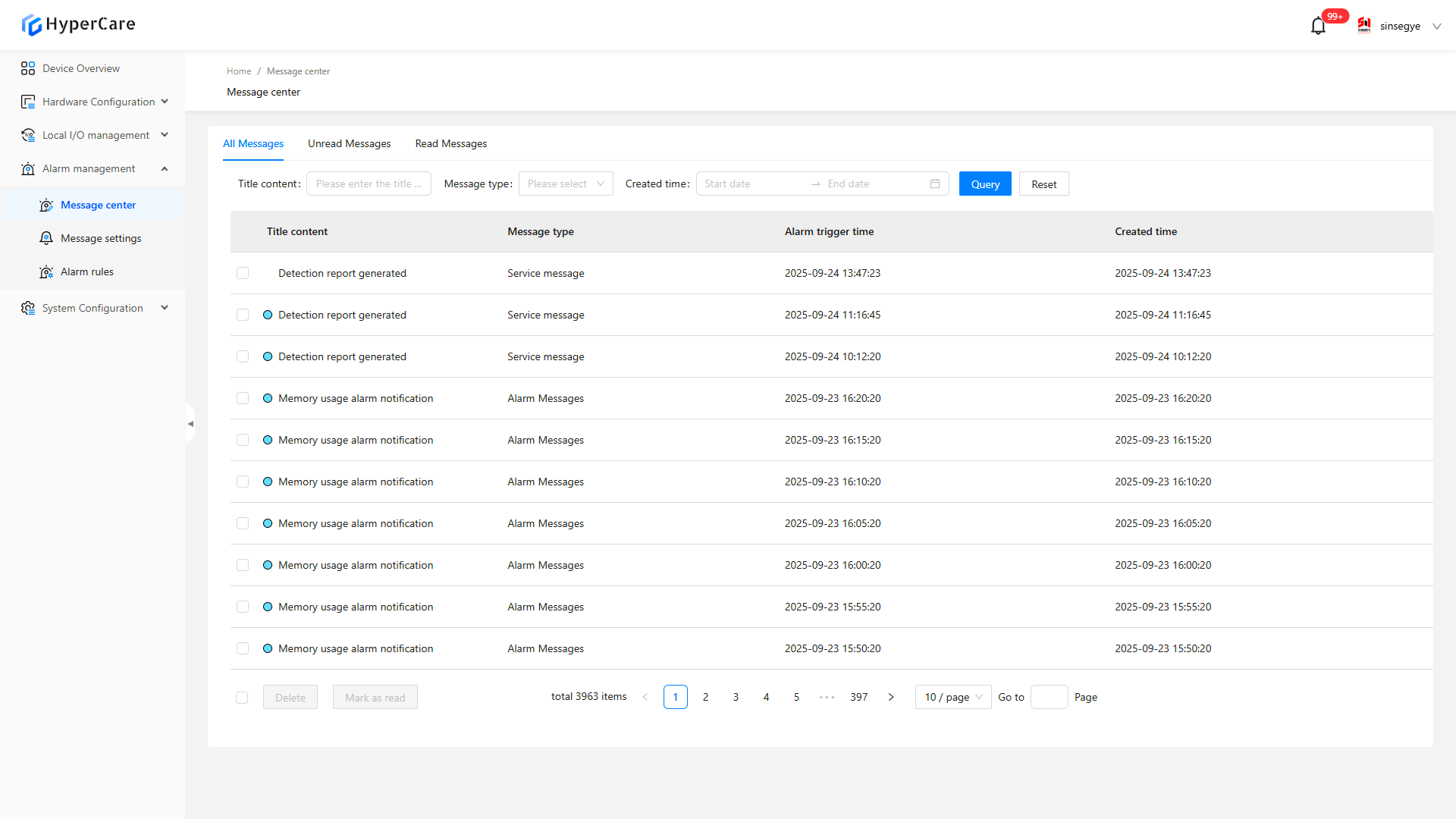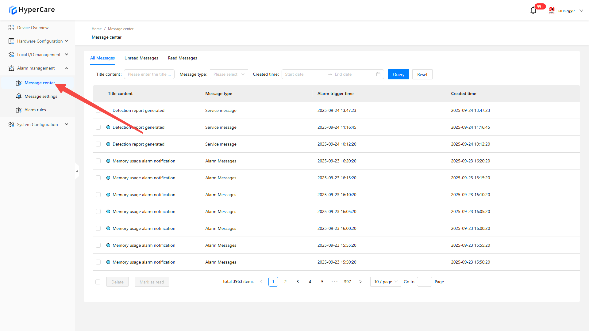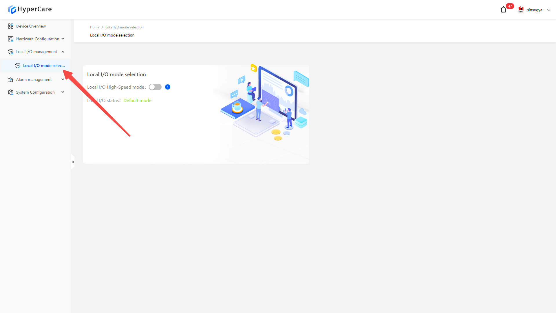 Open the browser, enter the IP address of the iComputer + \[:8010], and then press the \[Enter] key. The page jumps to the login interface of HyperCare.