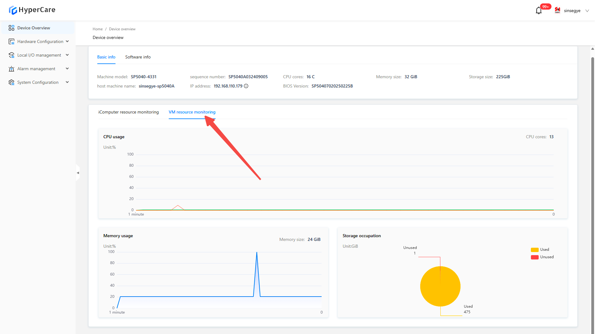 Only models SP7010-1211, SP7020-2231, SP7022-2231, SP5040-4331, SP5040-3331, SX5232-2112, and SX2133 Type II are equipped with the virtual machine resource monitoring module. |
