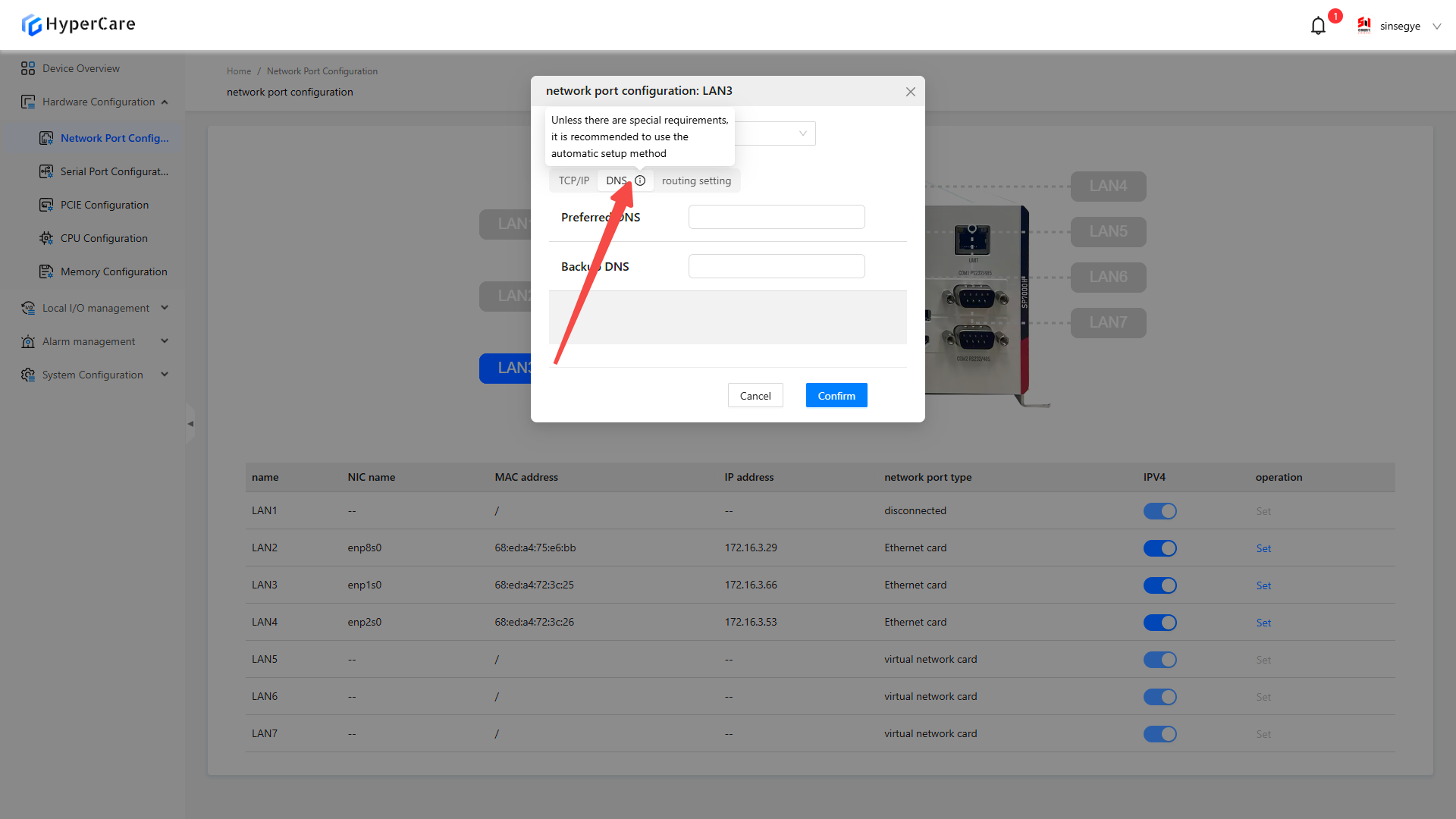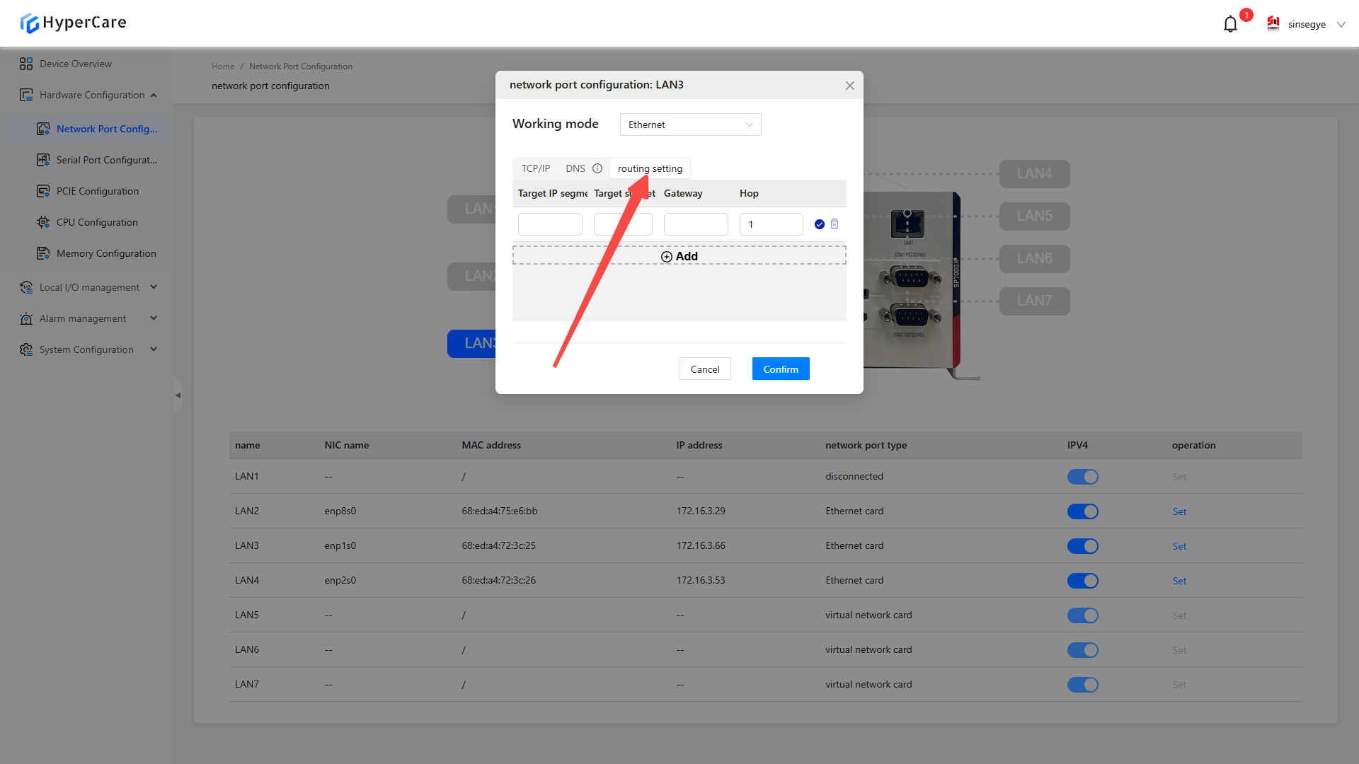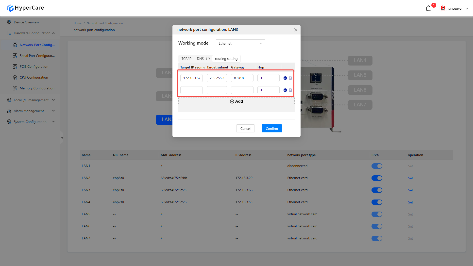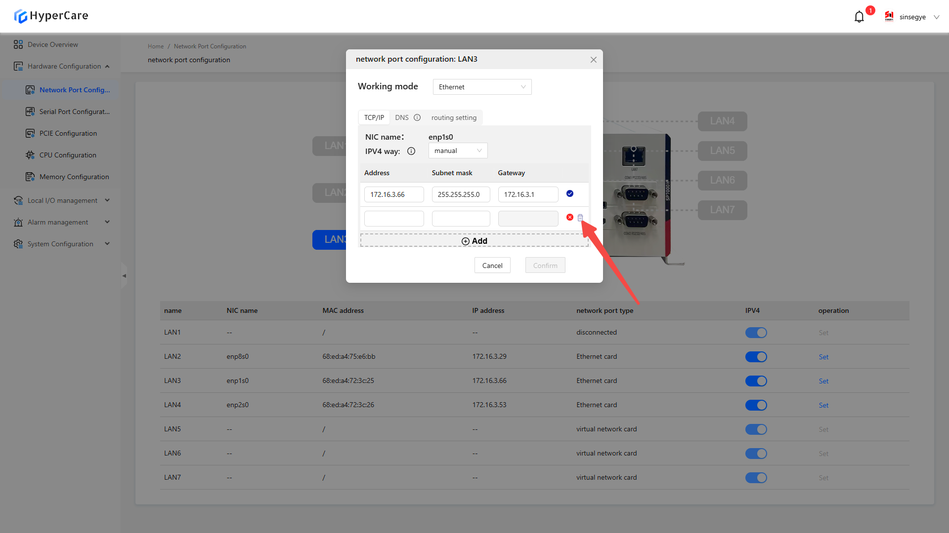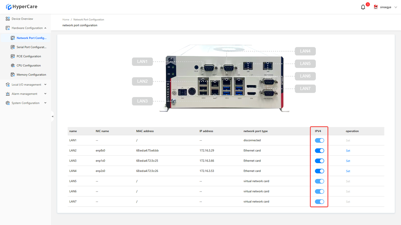 Based on LANx, return to the \[Network Port Configuration] page to view the correspondence in the port information (or directly corresponding to the LANx printed on the physical device).