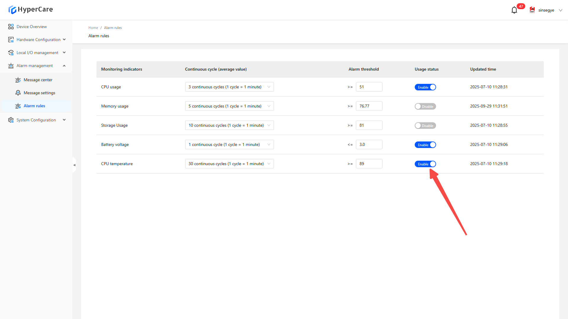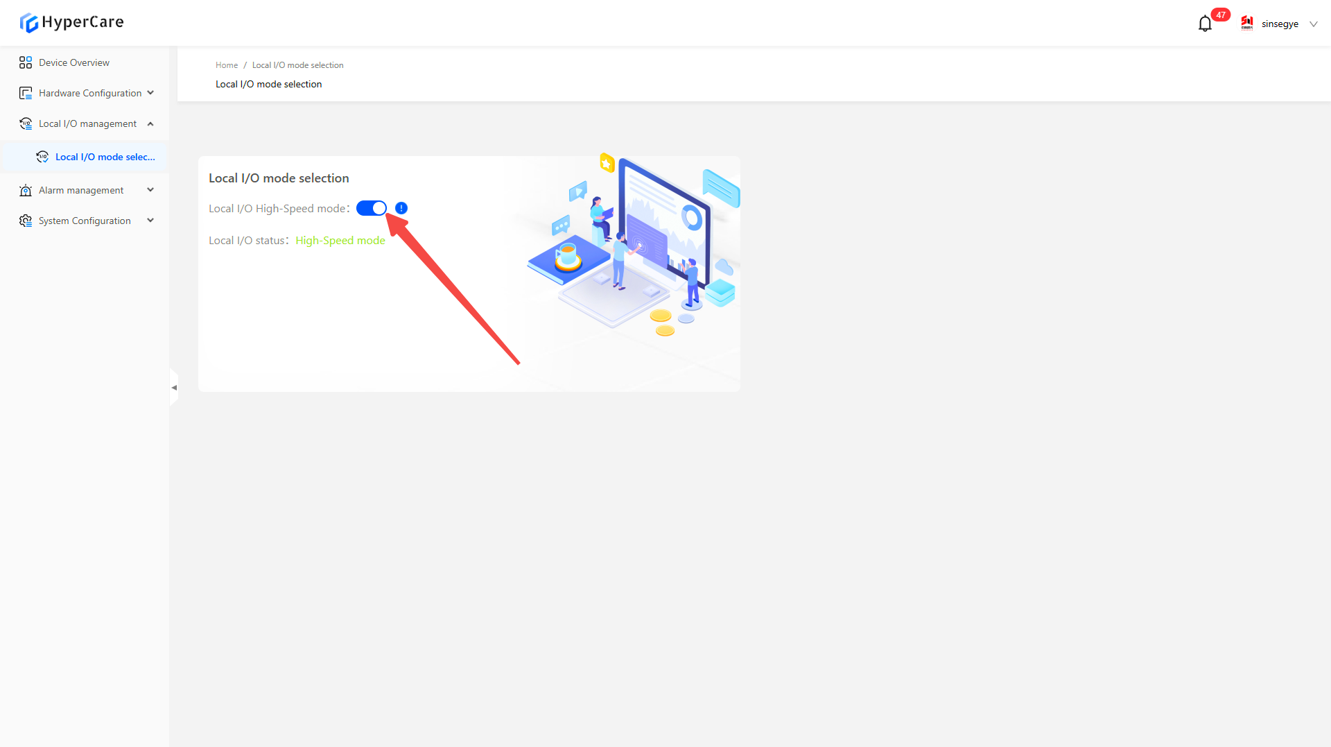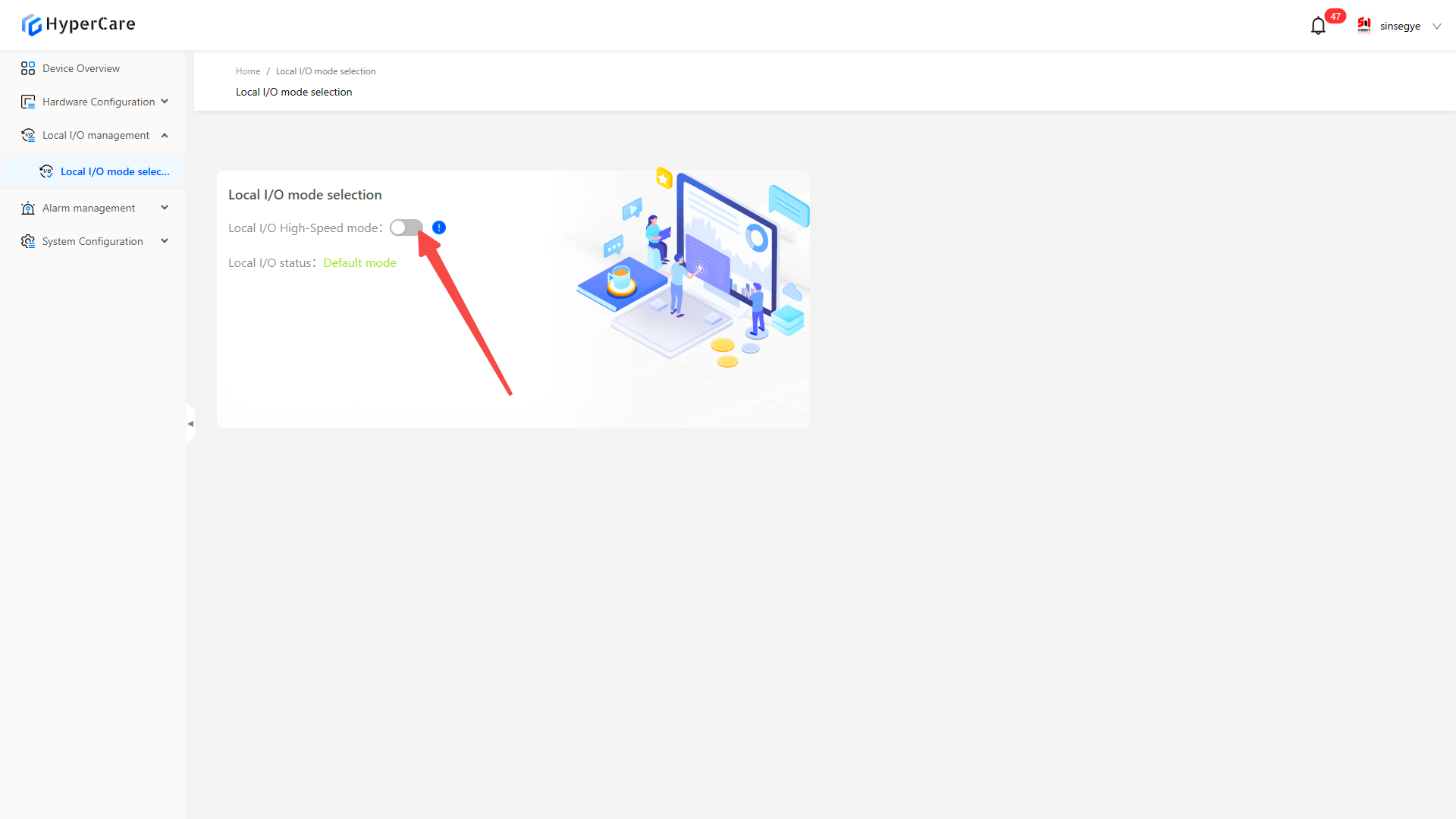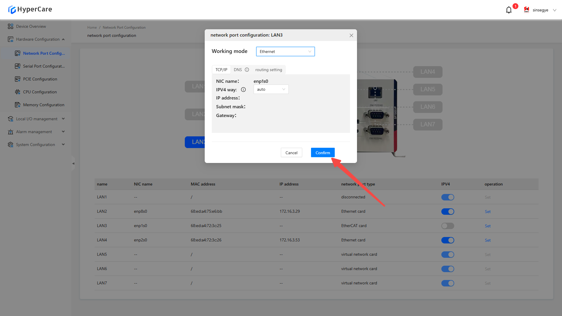 Click the \[Switch] slider corresponding to the NIC that needs configuration modification.