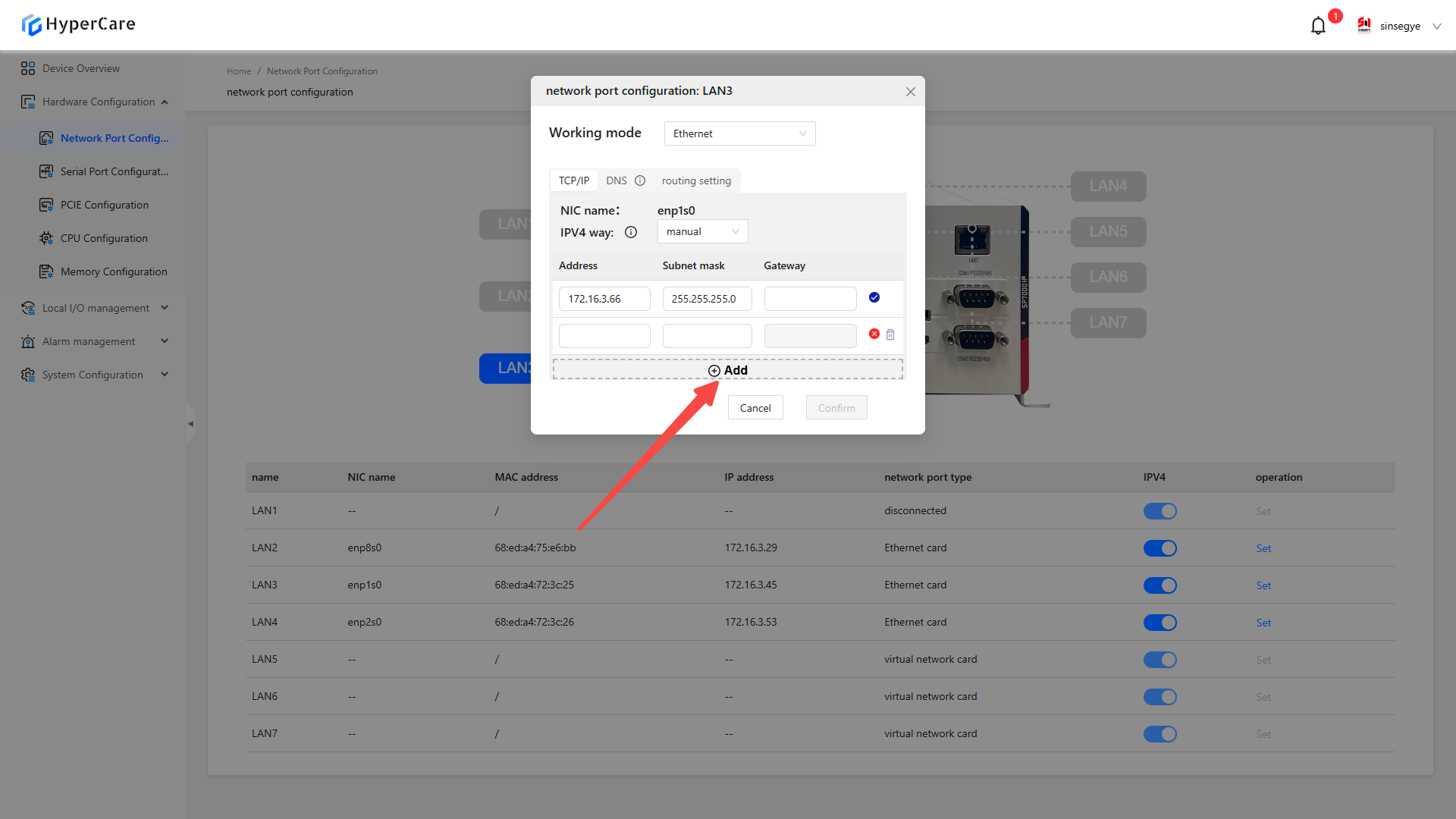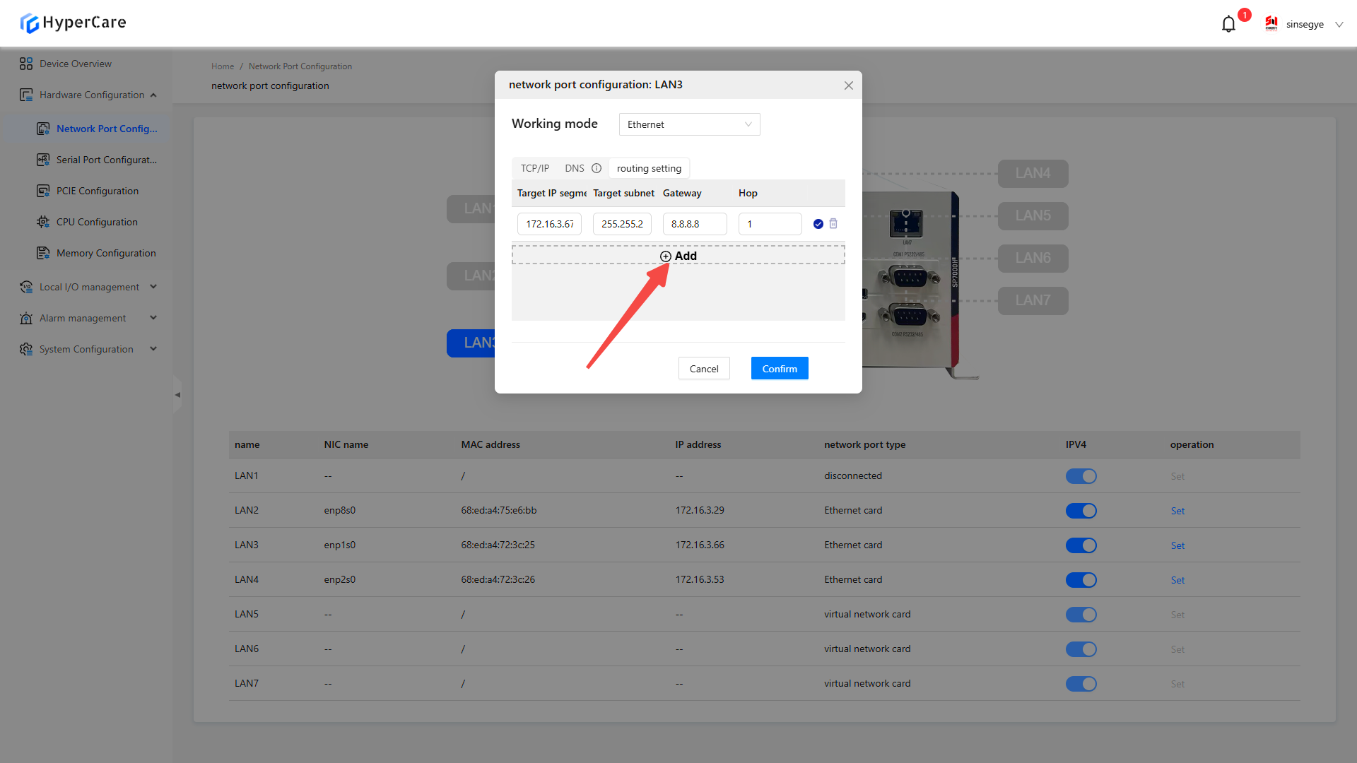 Click the \[⊕ Add] button below to create a new IPV4 entry.