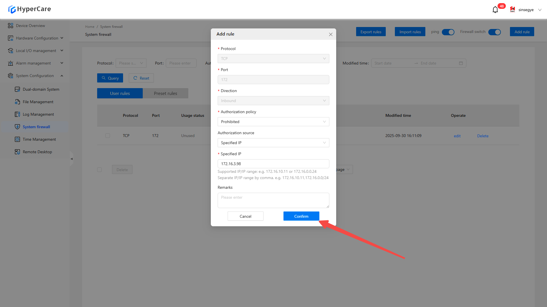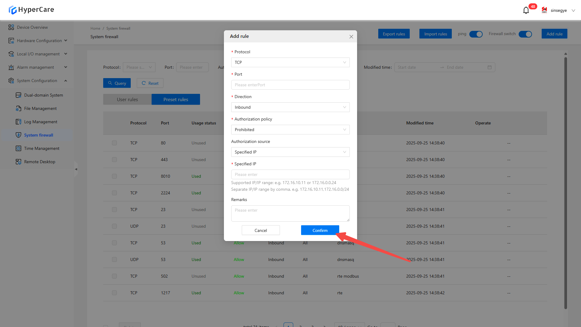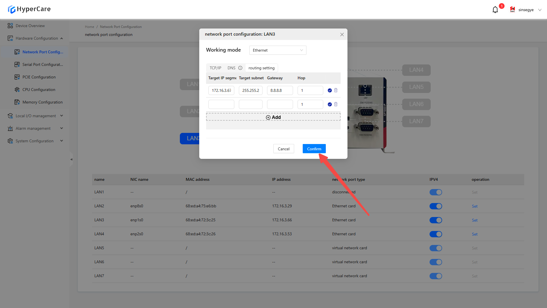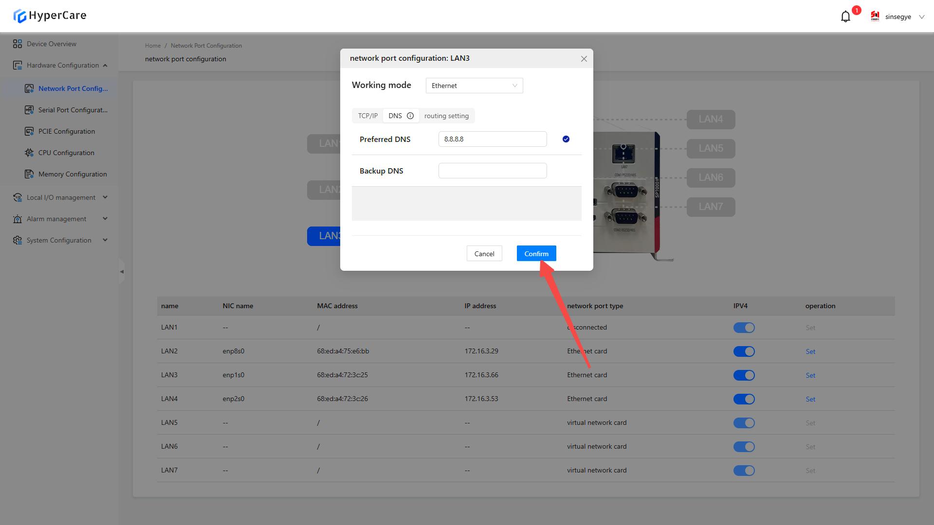 After completing the configuration changes, be sure to click the "Modify" button for the changes to take effect.
