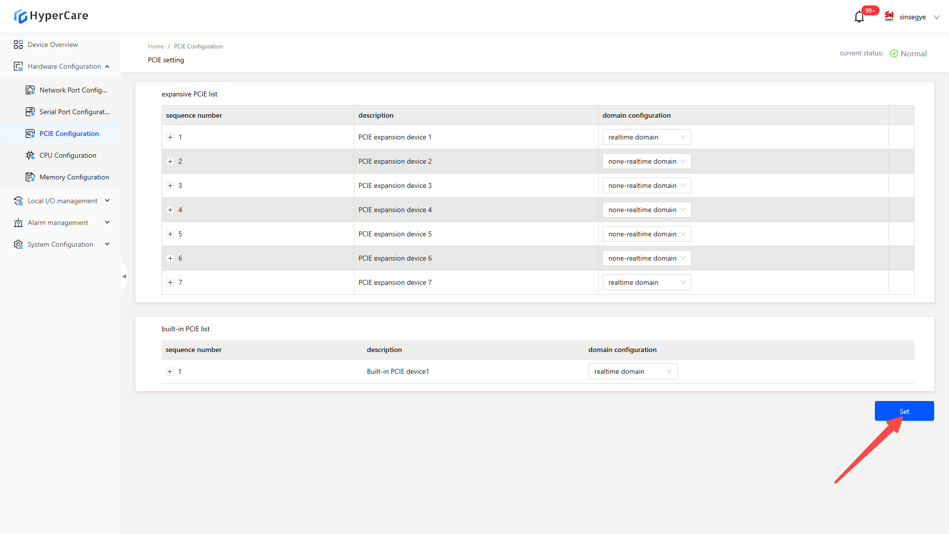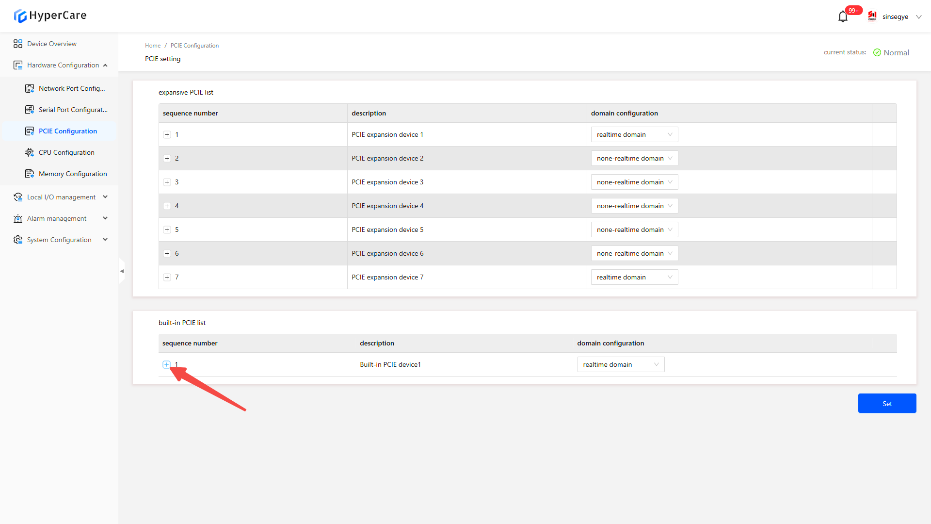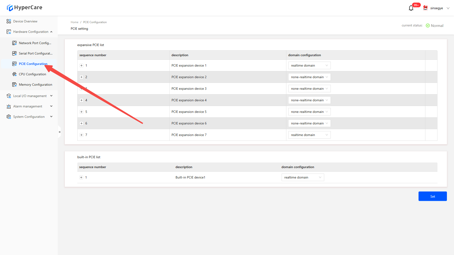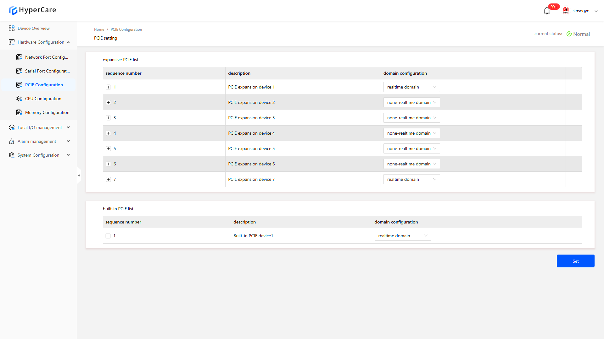 This function is used to configure the settings of built-in or extended PCIE device domains.