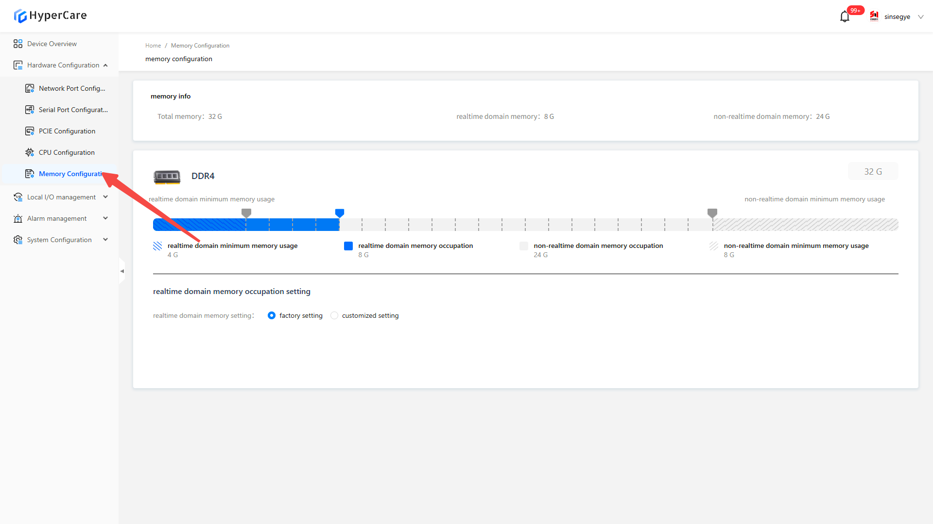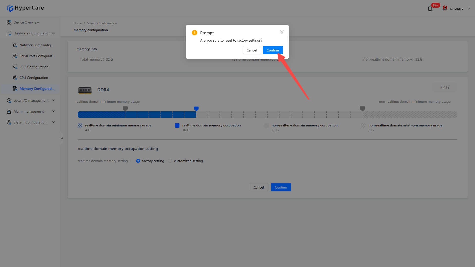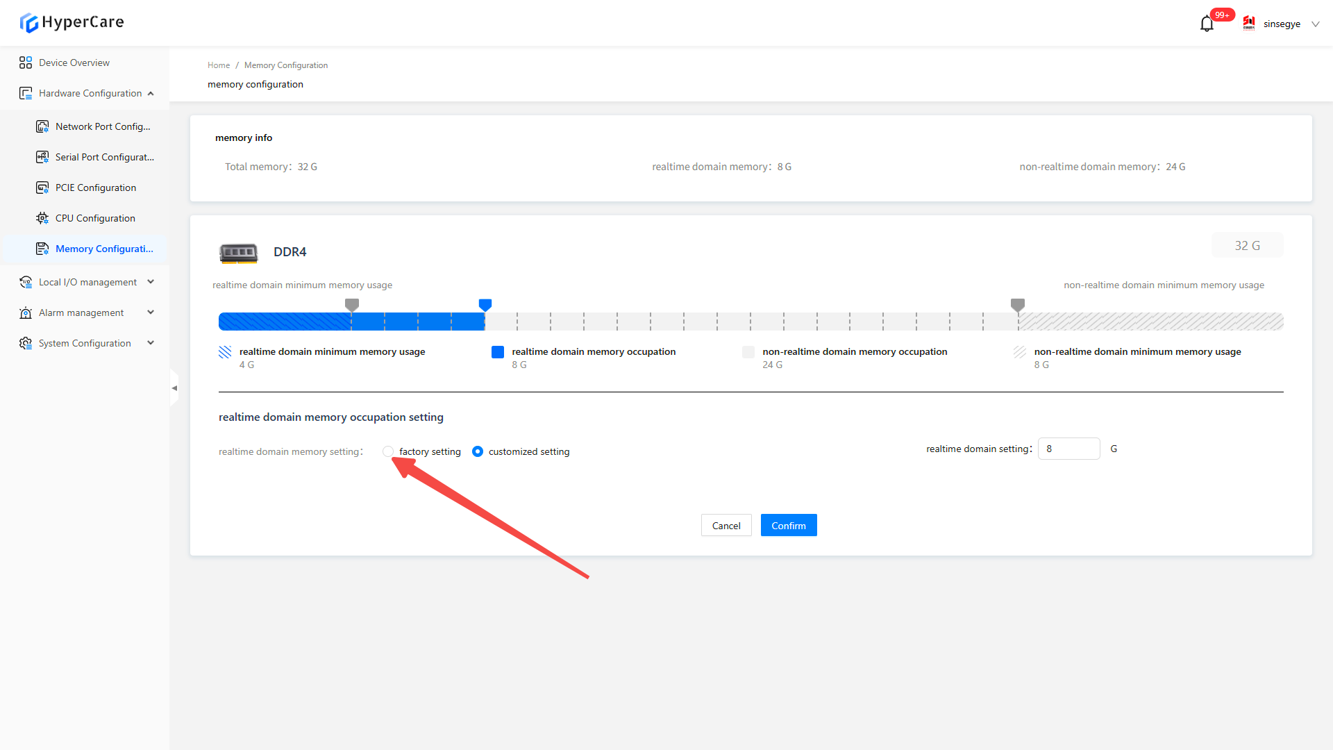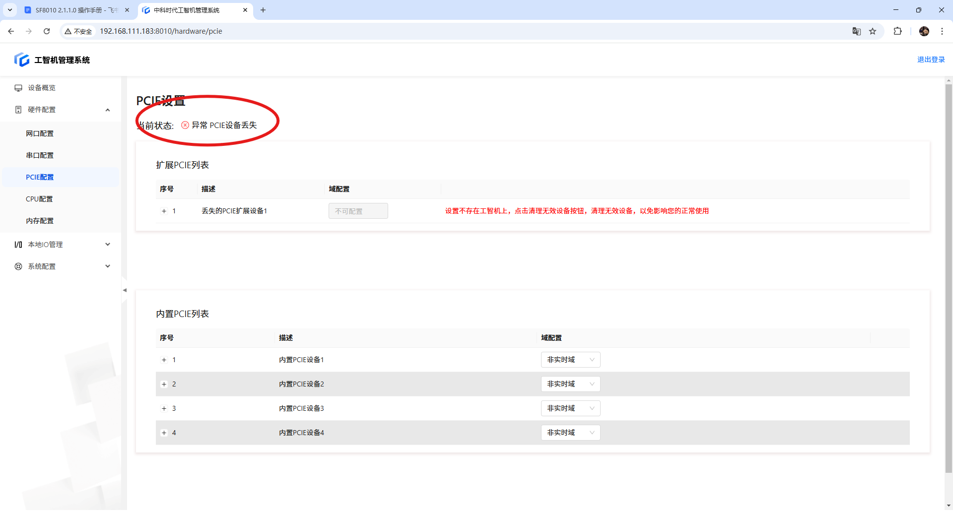 Do not click on \[Network Port Configuration], \[PCIE Configuration], or \[Memory Configuration] tabs during the switching process of the non-real-time domain system.