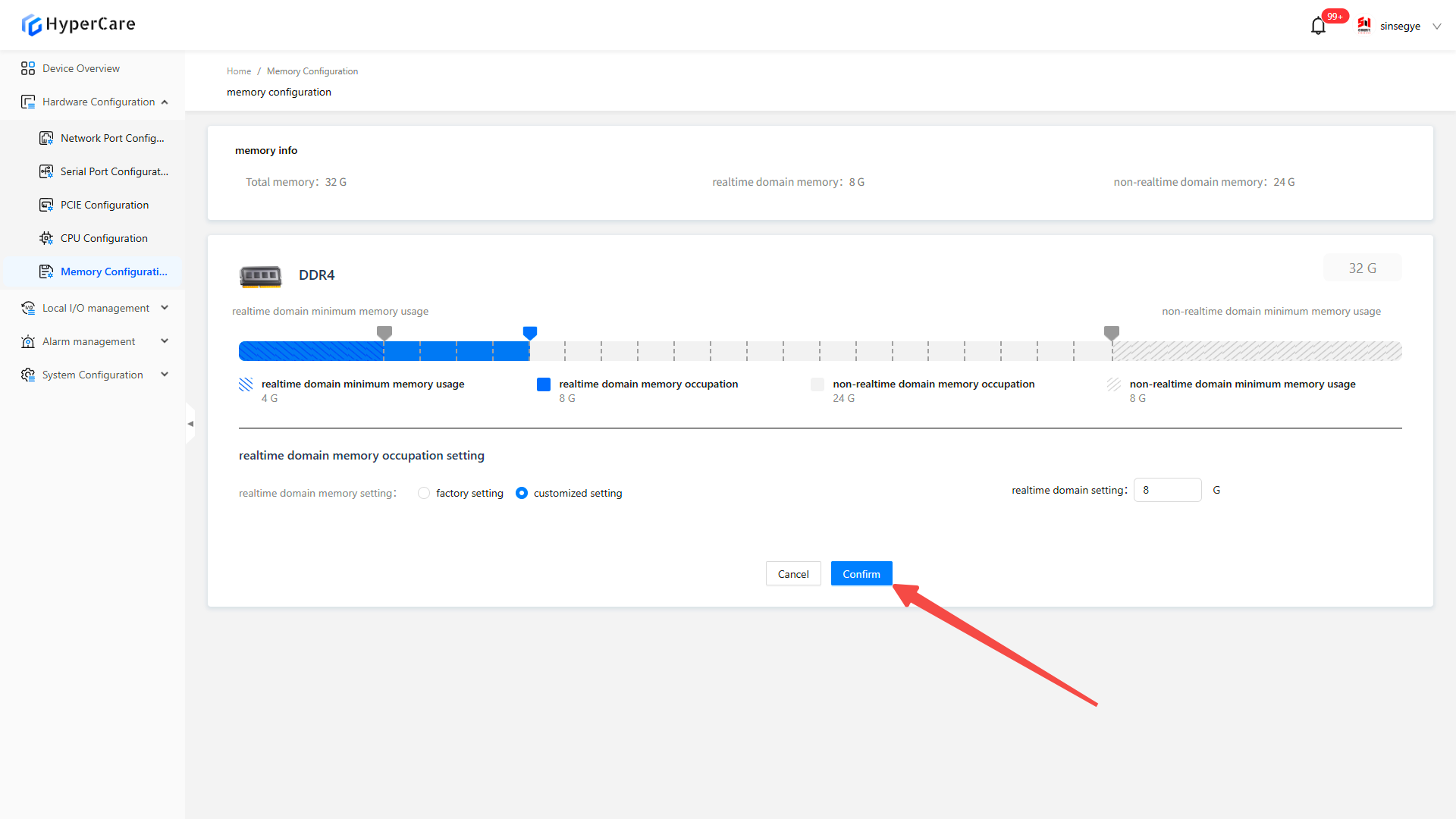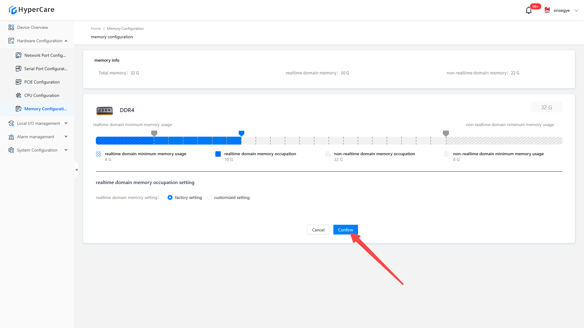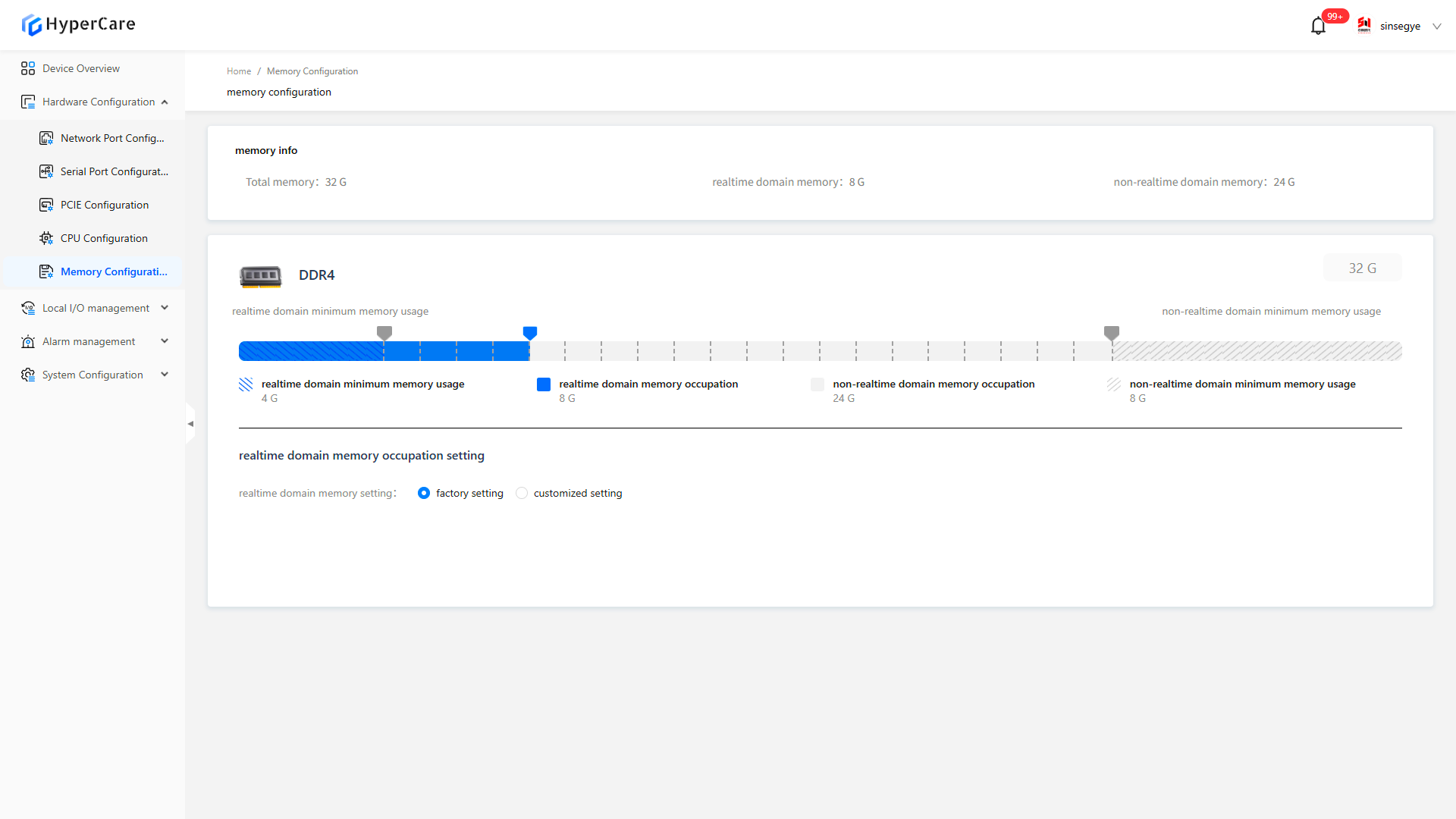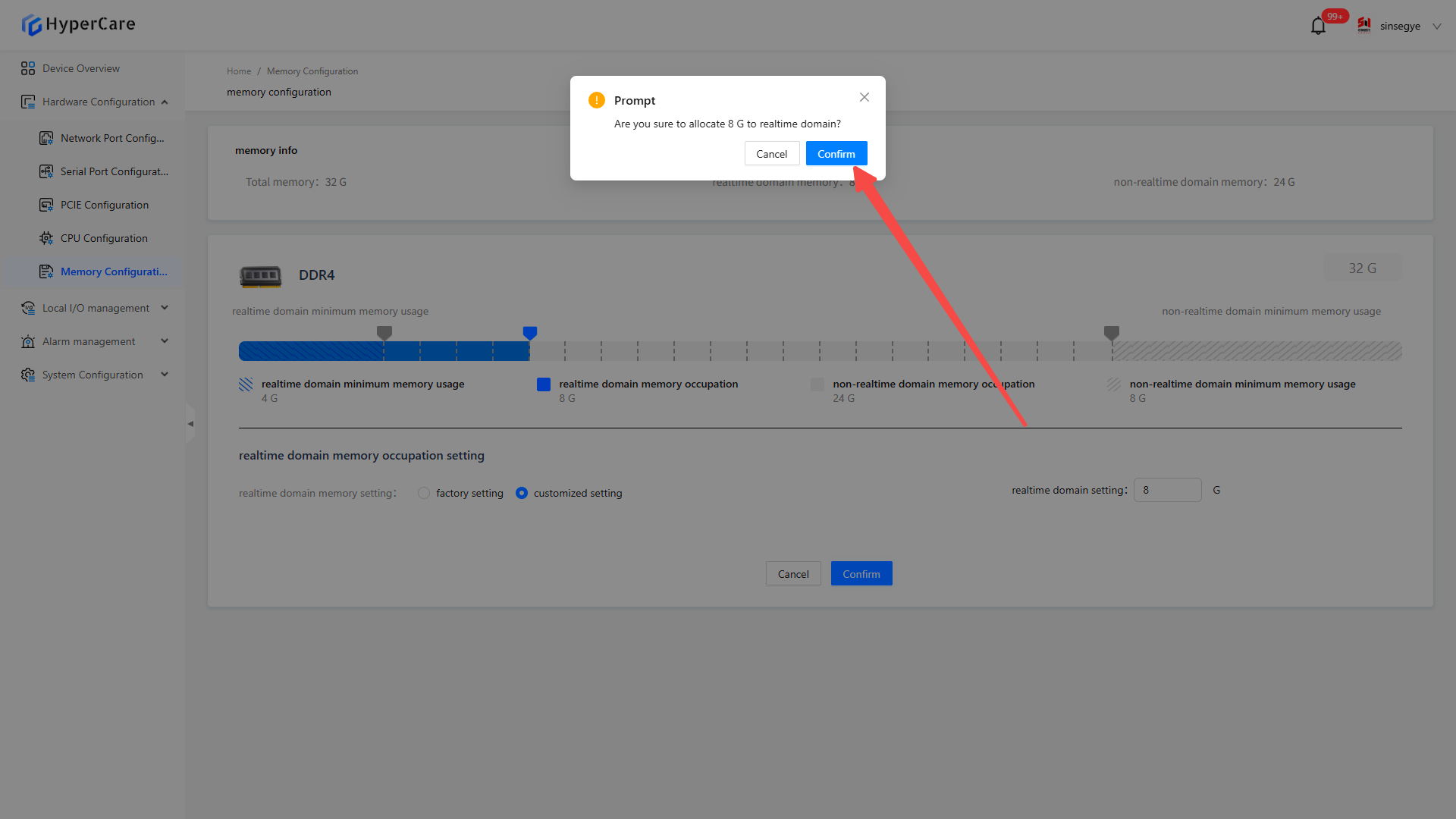 Do not click on \[Network Port Configuration], \[PCIE Configuration], or \[Memory Configuration] tabs during the switching process of the non-real-time domain system.