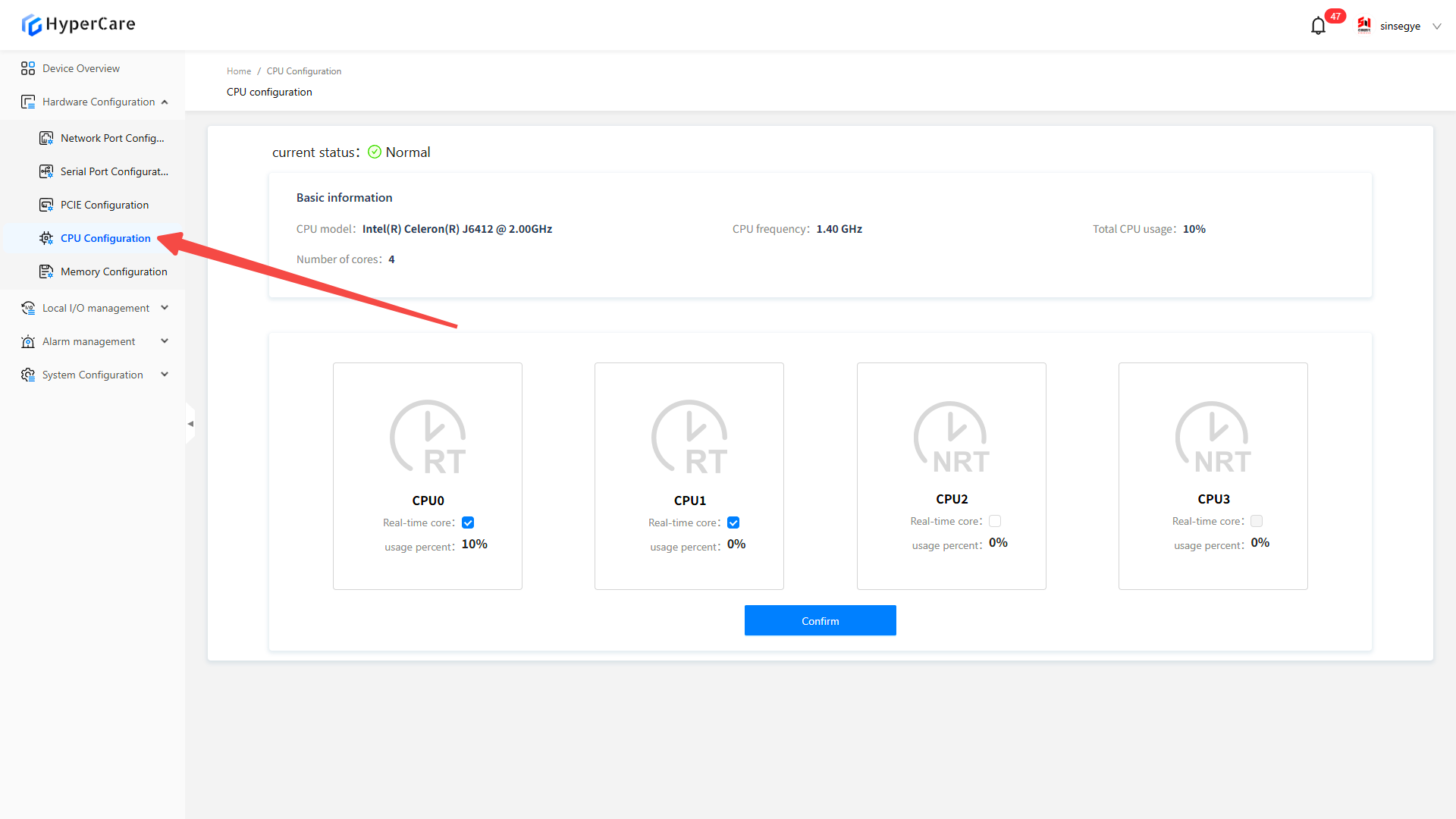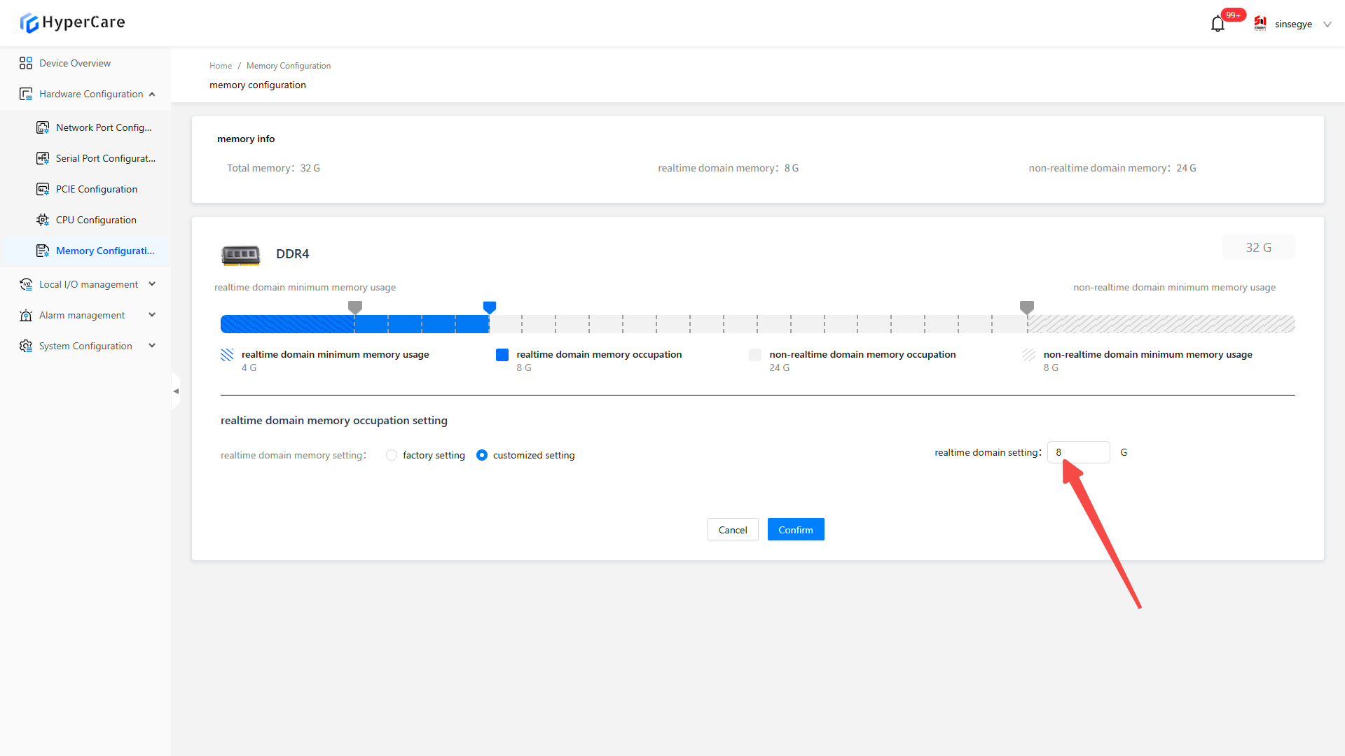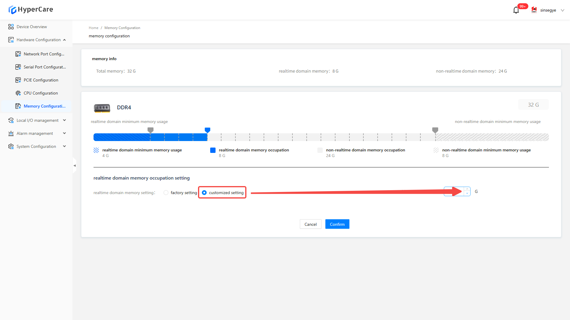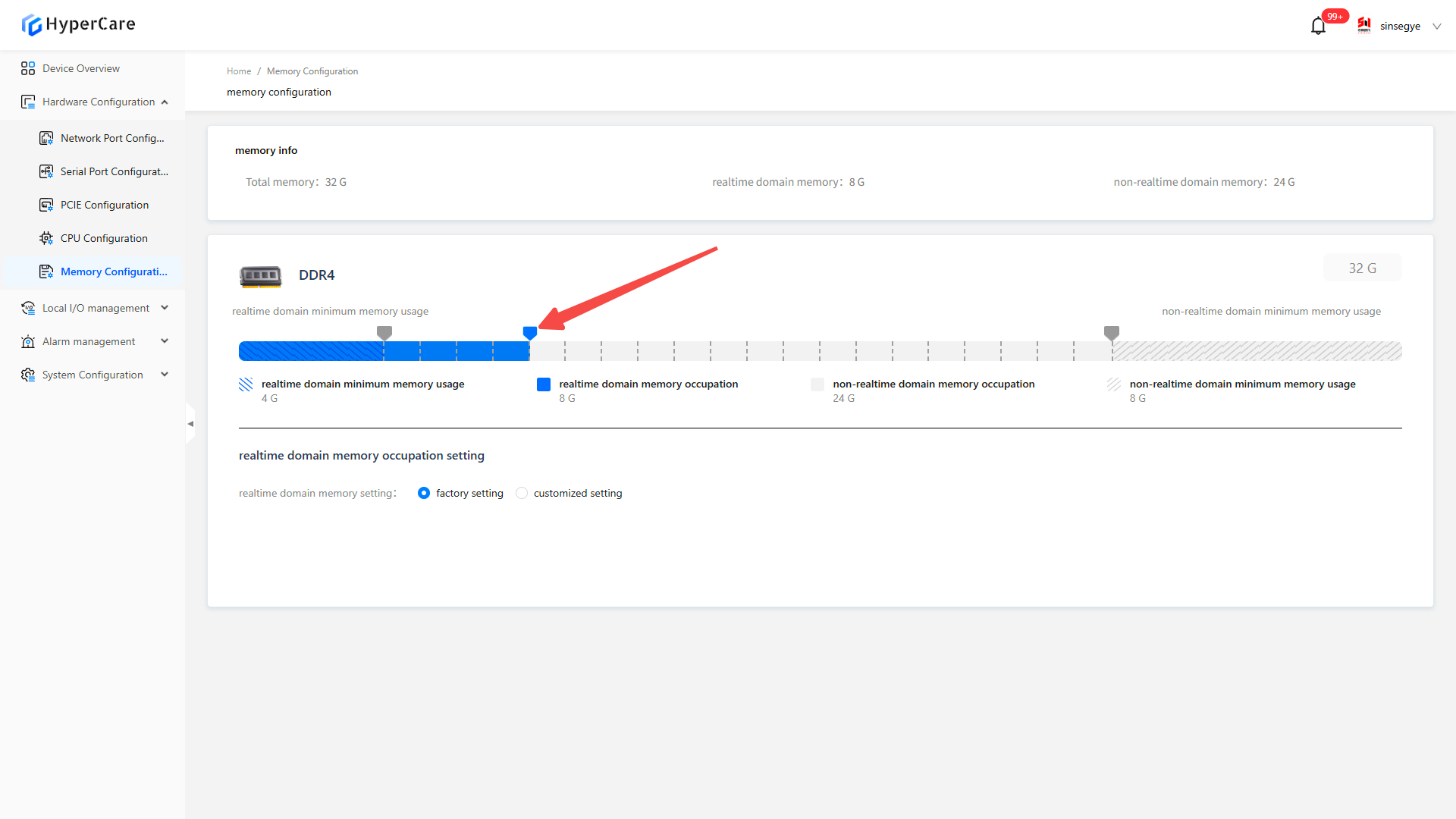 Do not click on \[Network Port Configuration], \[PCIE Configuration], or \[Memory Configuration] tabs during the switching process of the non-real-time domain system.