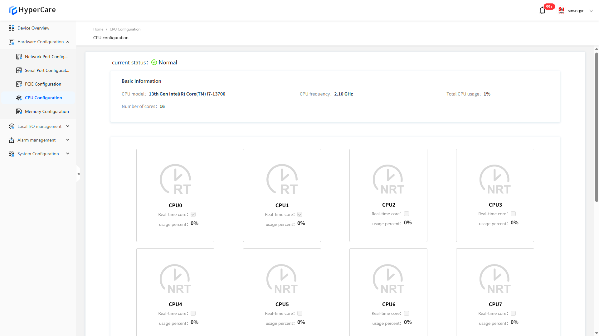 This page displays basic information, software information, and real-time and non-real-time domain information of the real-time monitoring device.