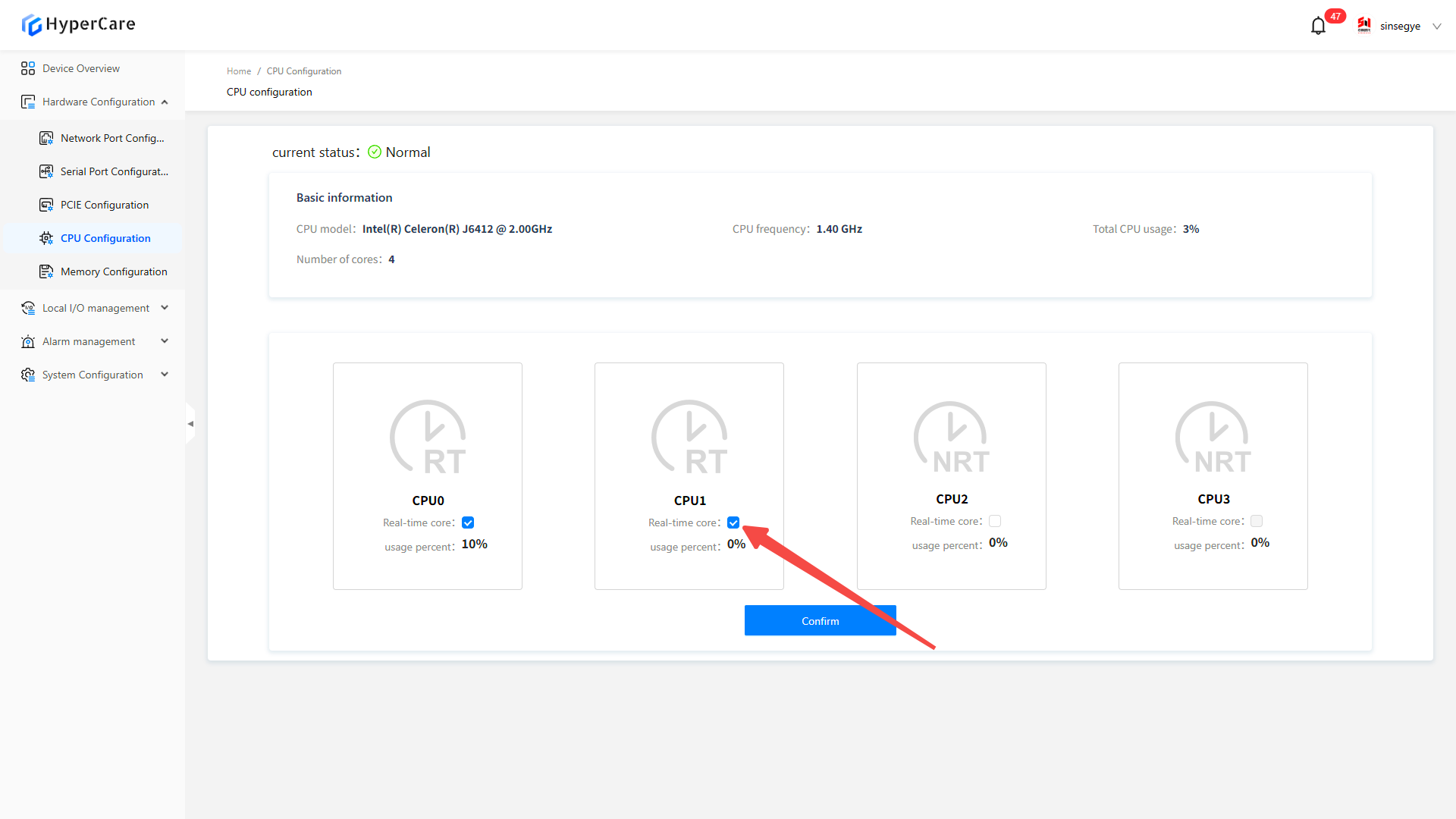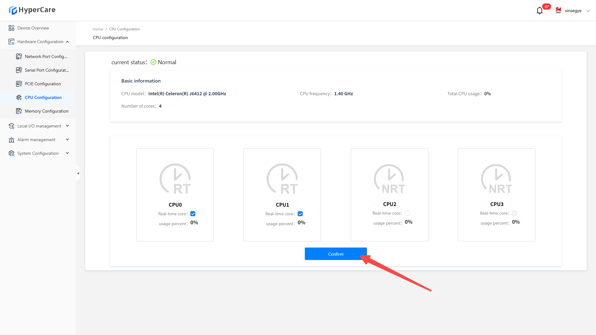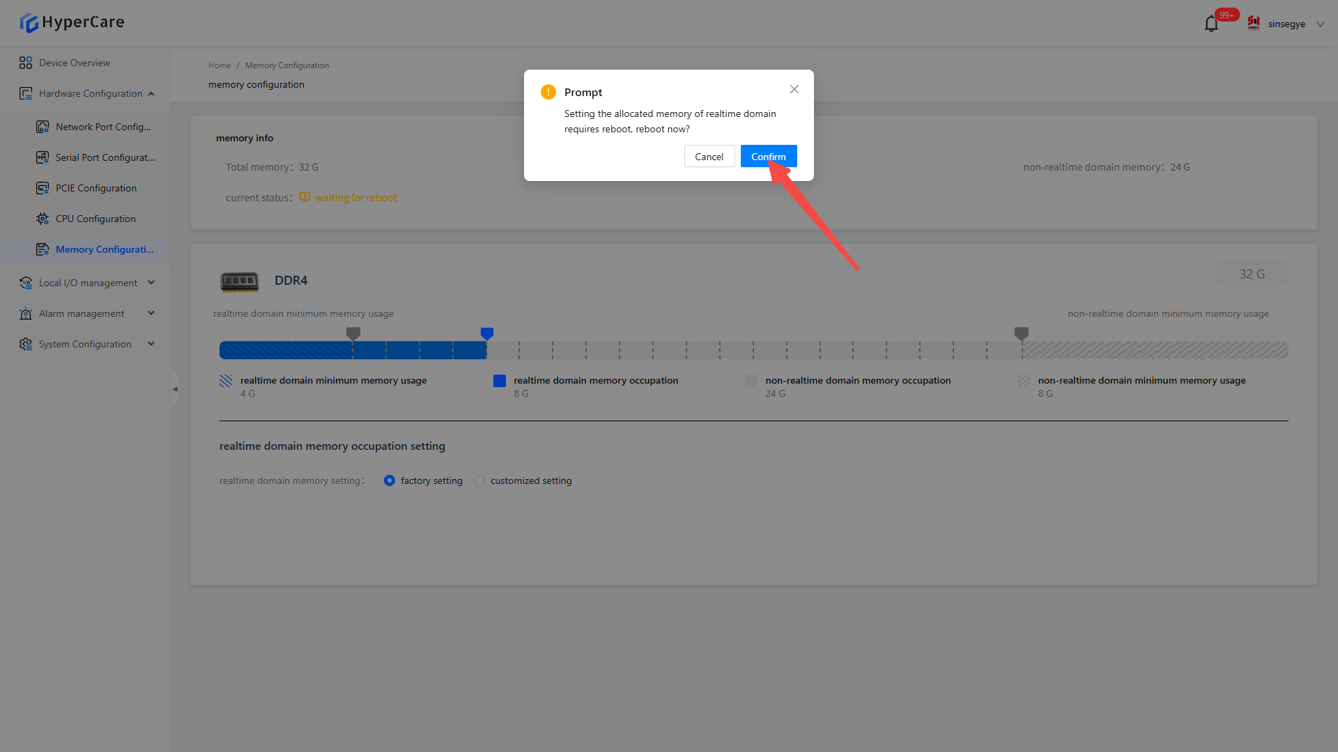 Clicking \[Confirm Restart] will restart the non-real-time domain system (desktop) while keeping the real-time domain system running normally.