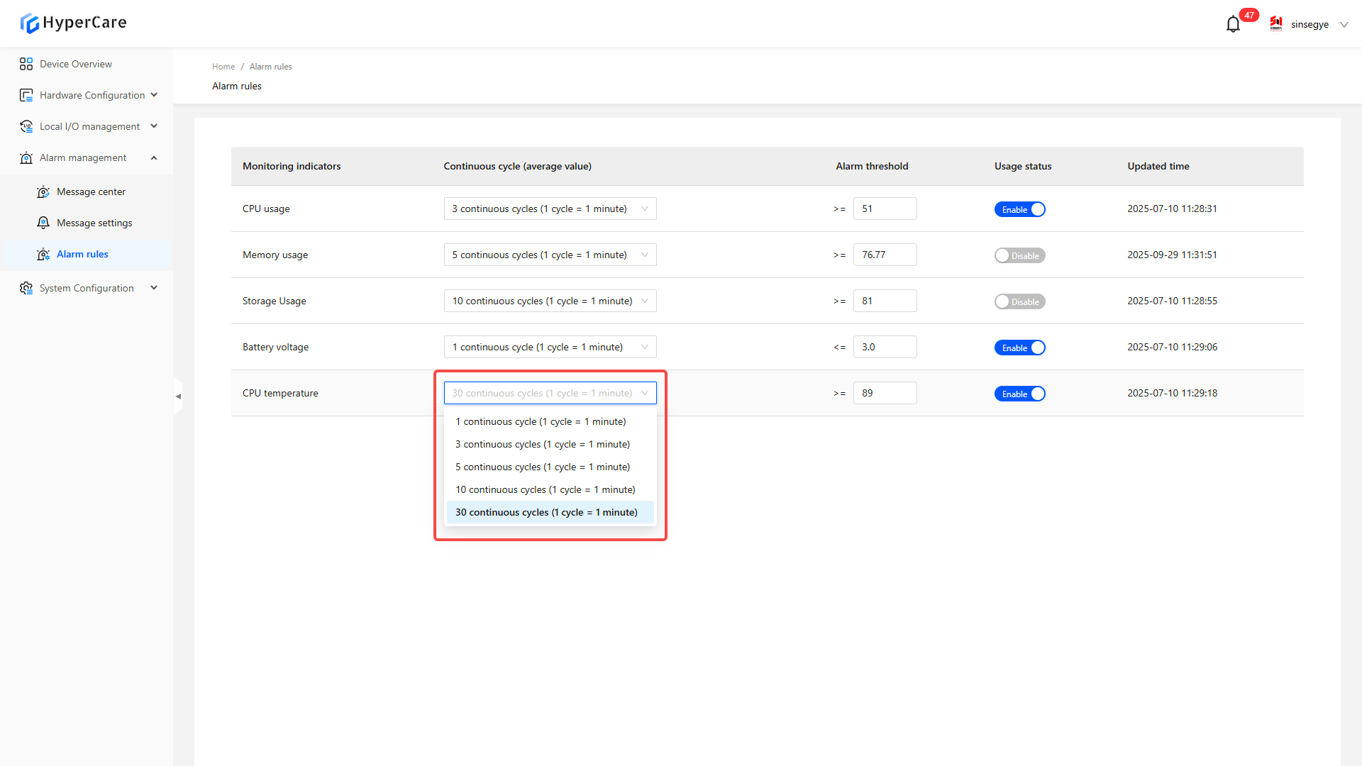 The time settings do not support automatic real-time update; you need to manually refresh the page to view the latest settings. |