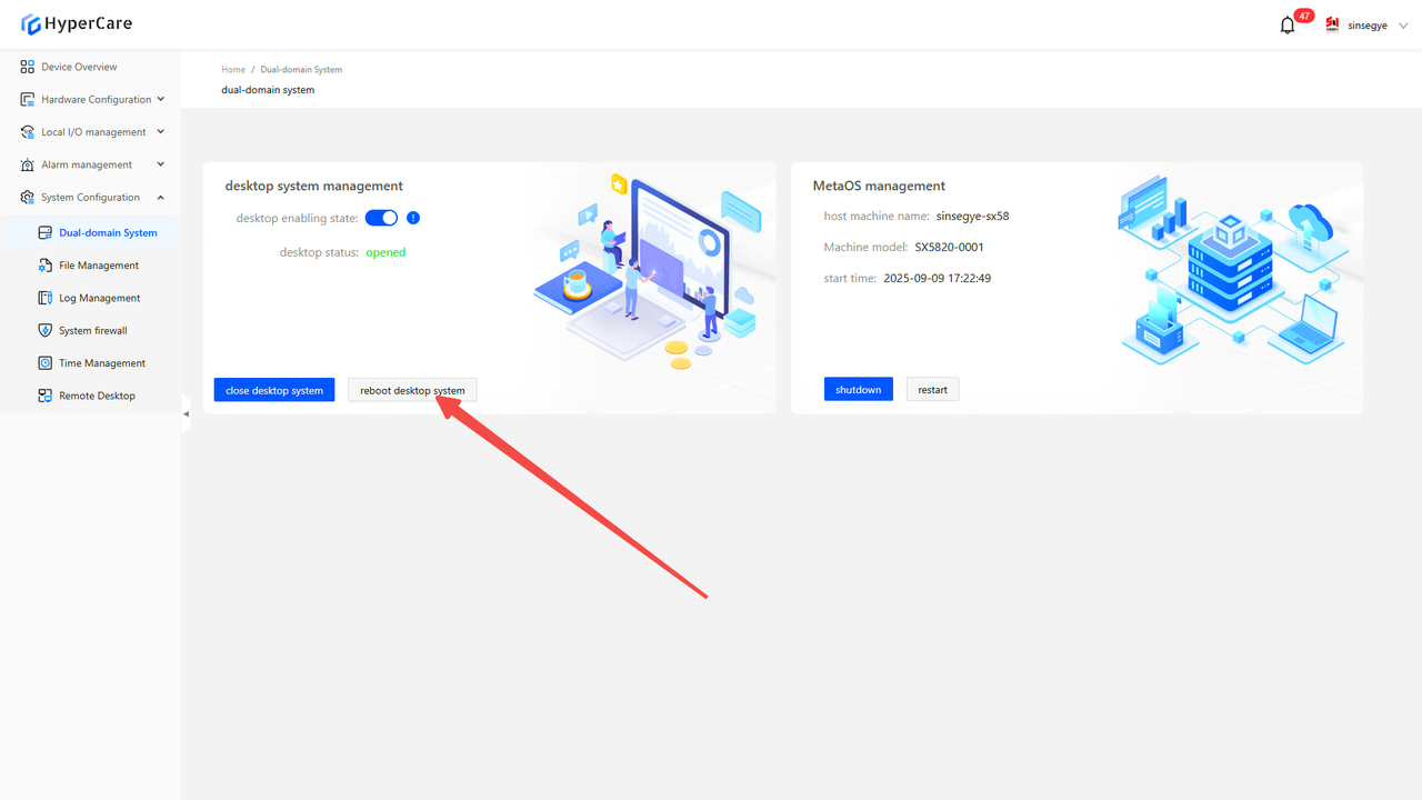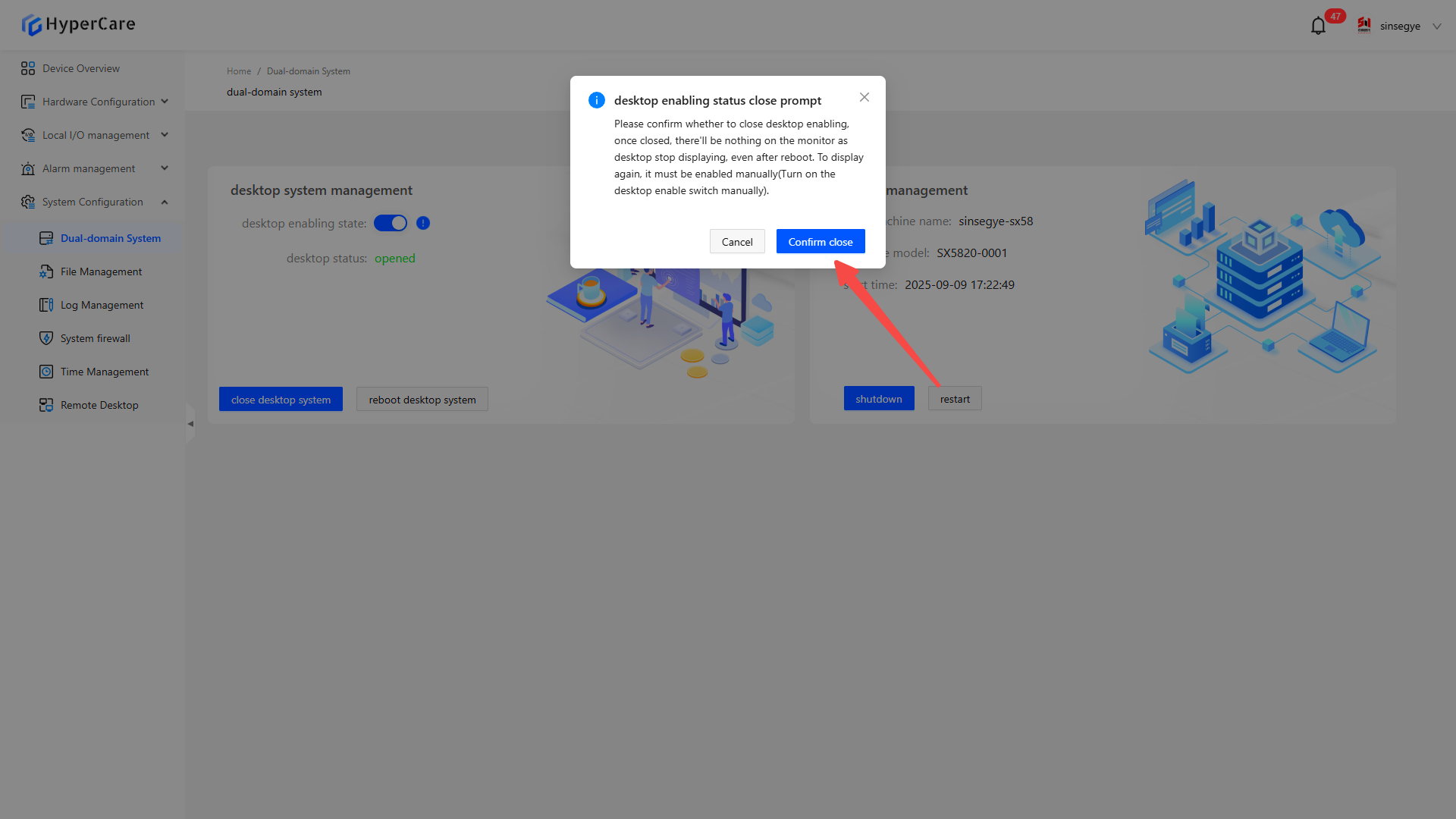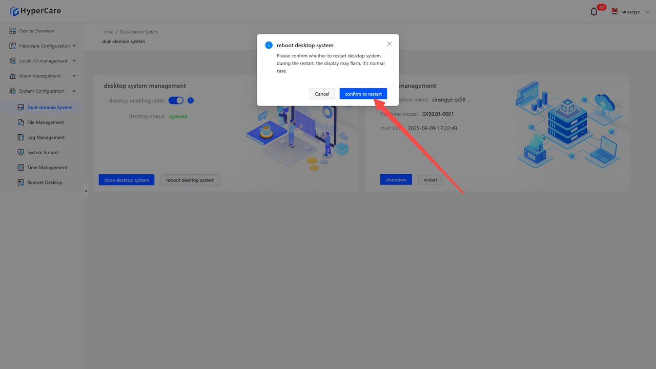 After clicking the \[Restart Desktop System] button, a confirmation prompt will pop up.
