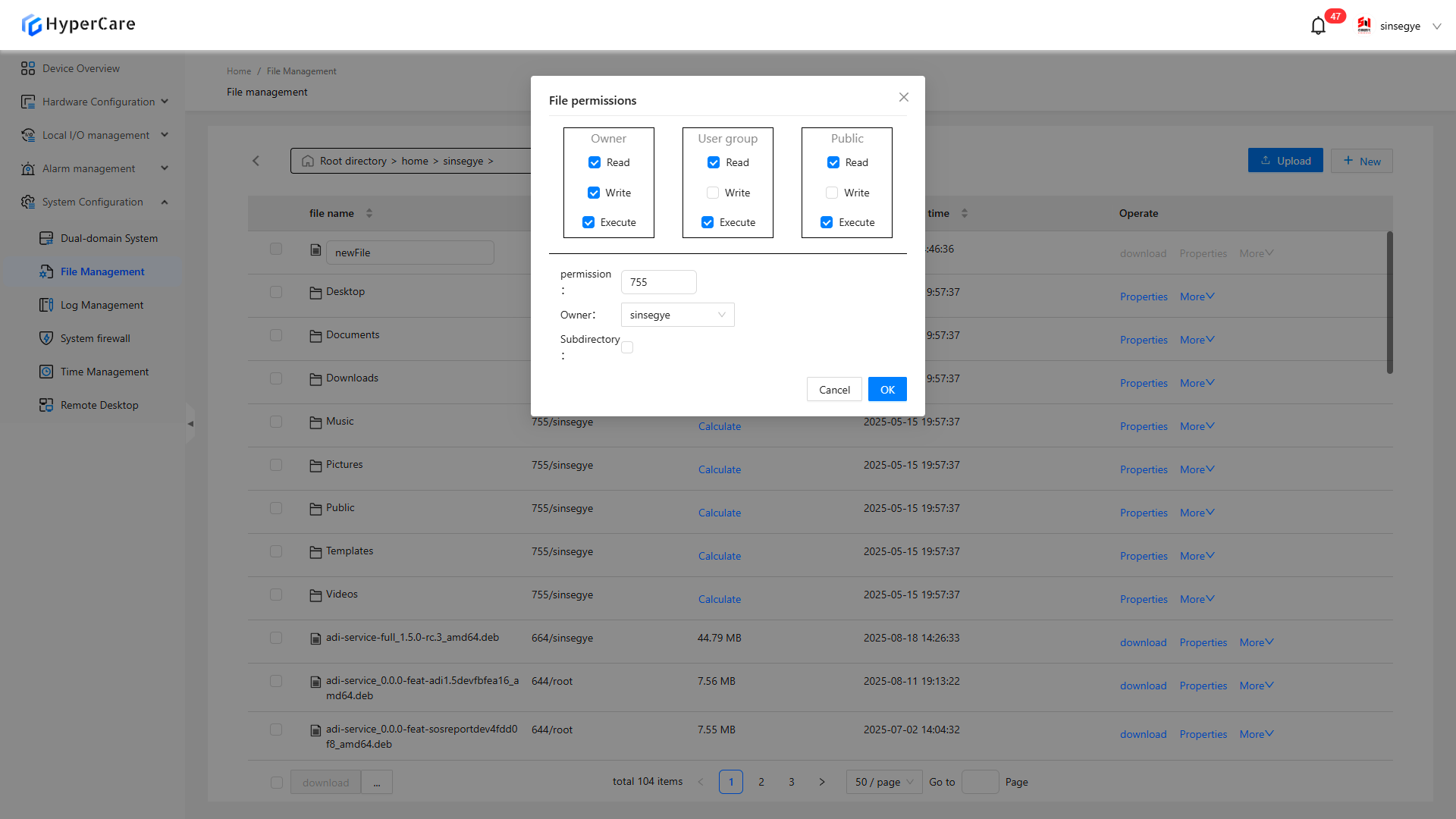 Subdirectory: If checked, it means that the same permissions has been applied to the current folder and its subfolders/files