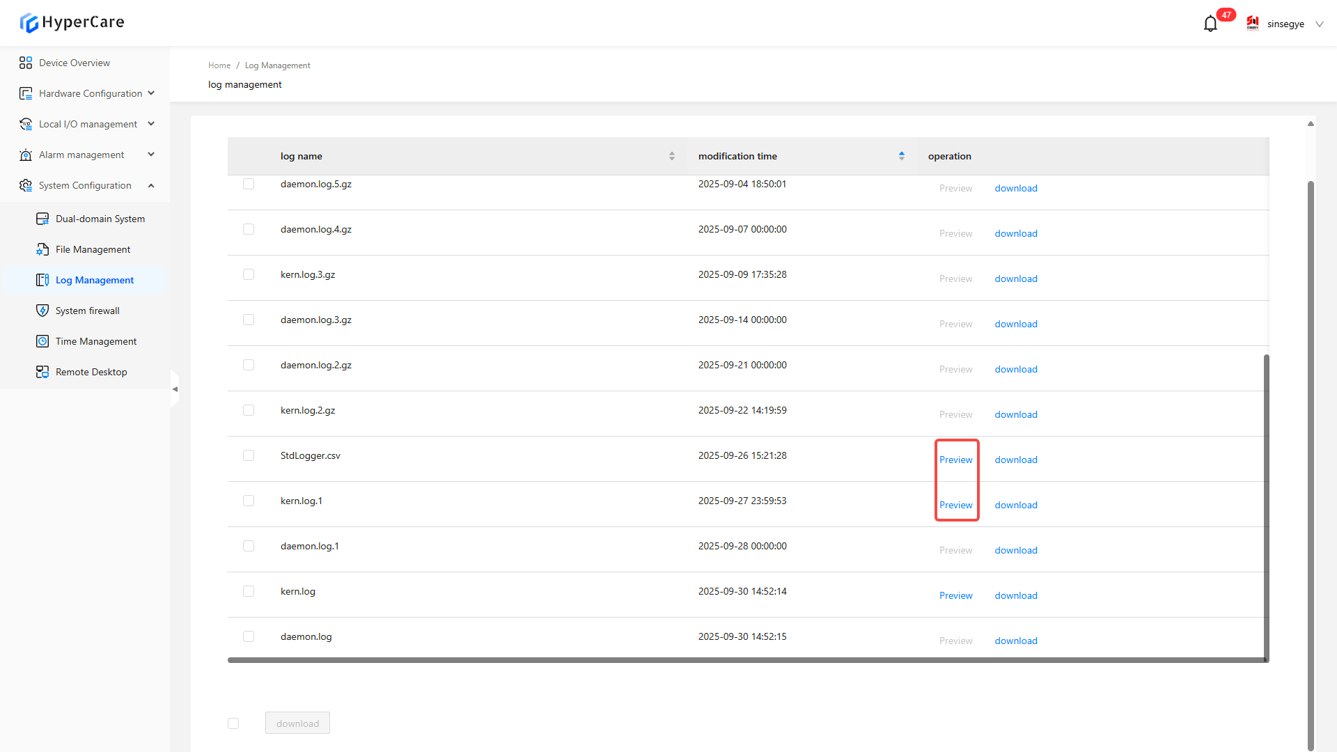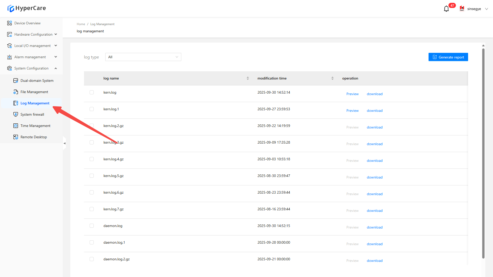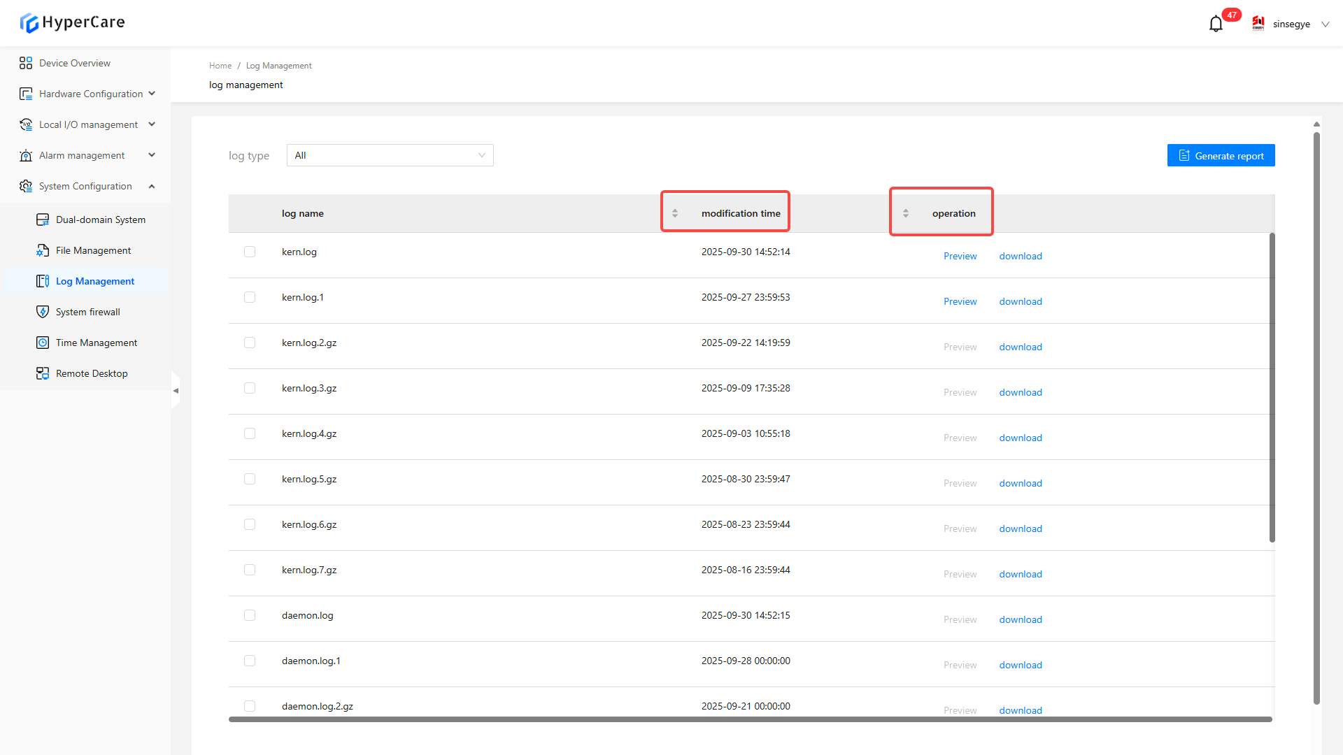 Support sorting by \[Log Name] or \[Modification Time]. Click the \[Arrow] button to toggle the sorting modes.