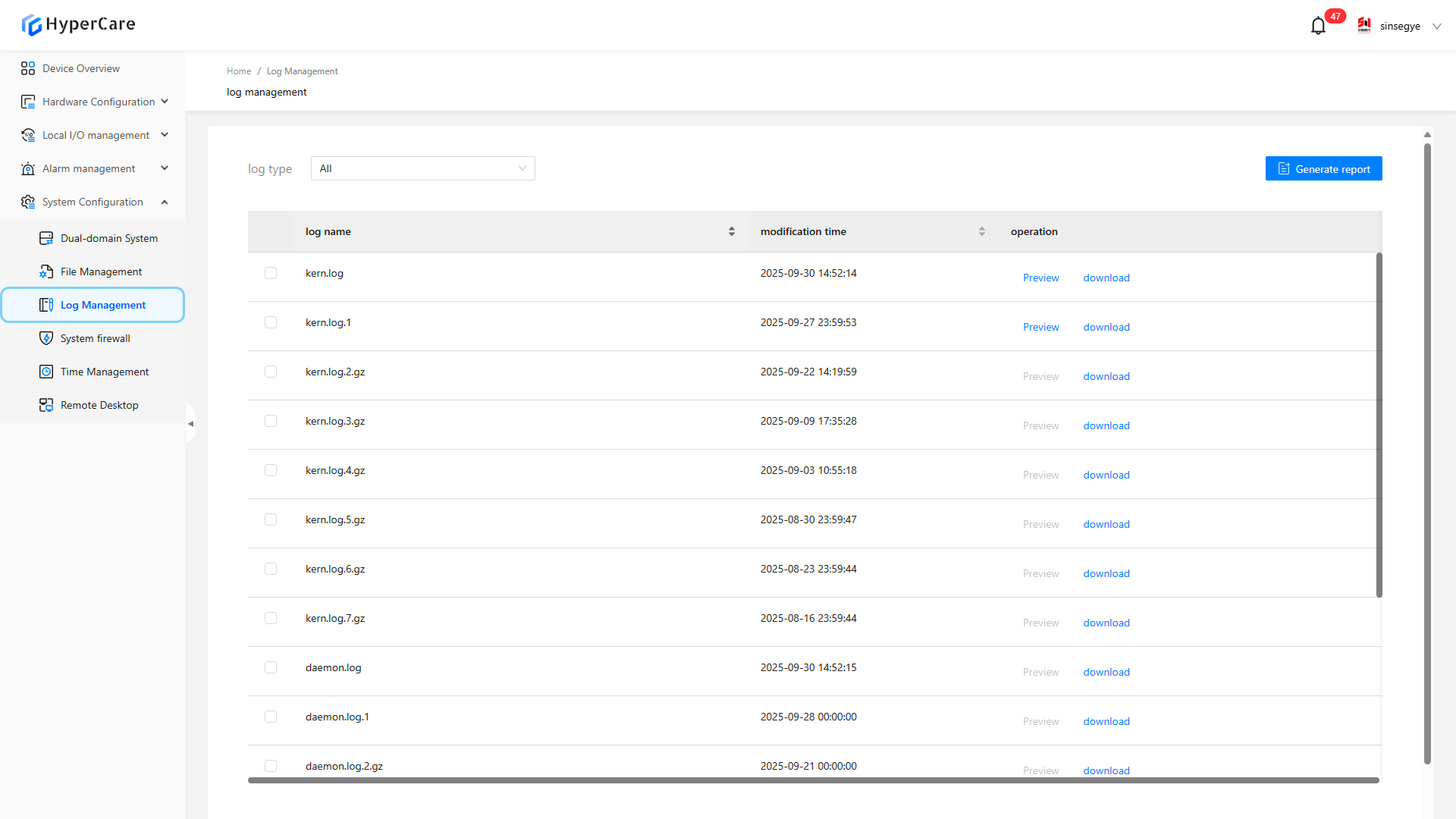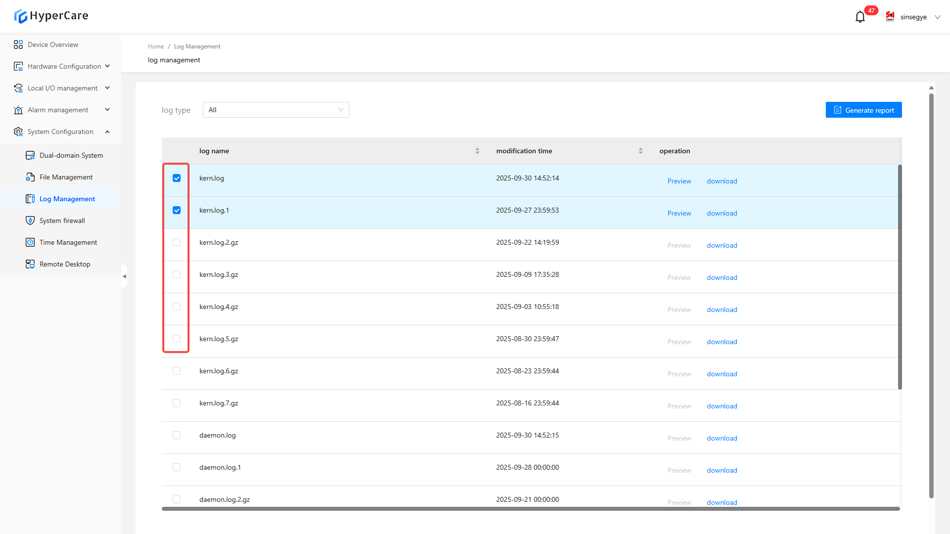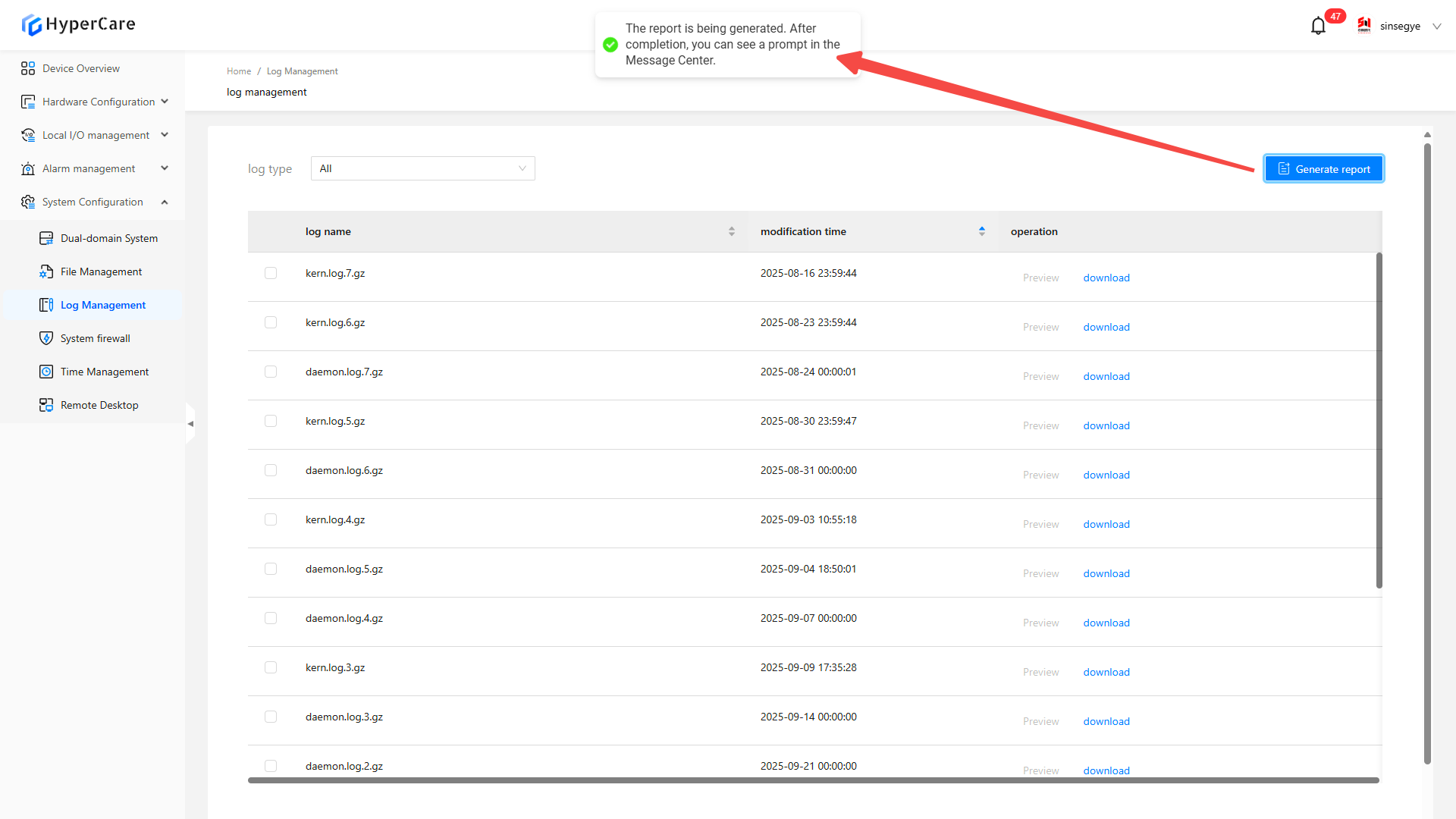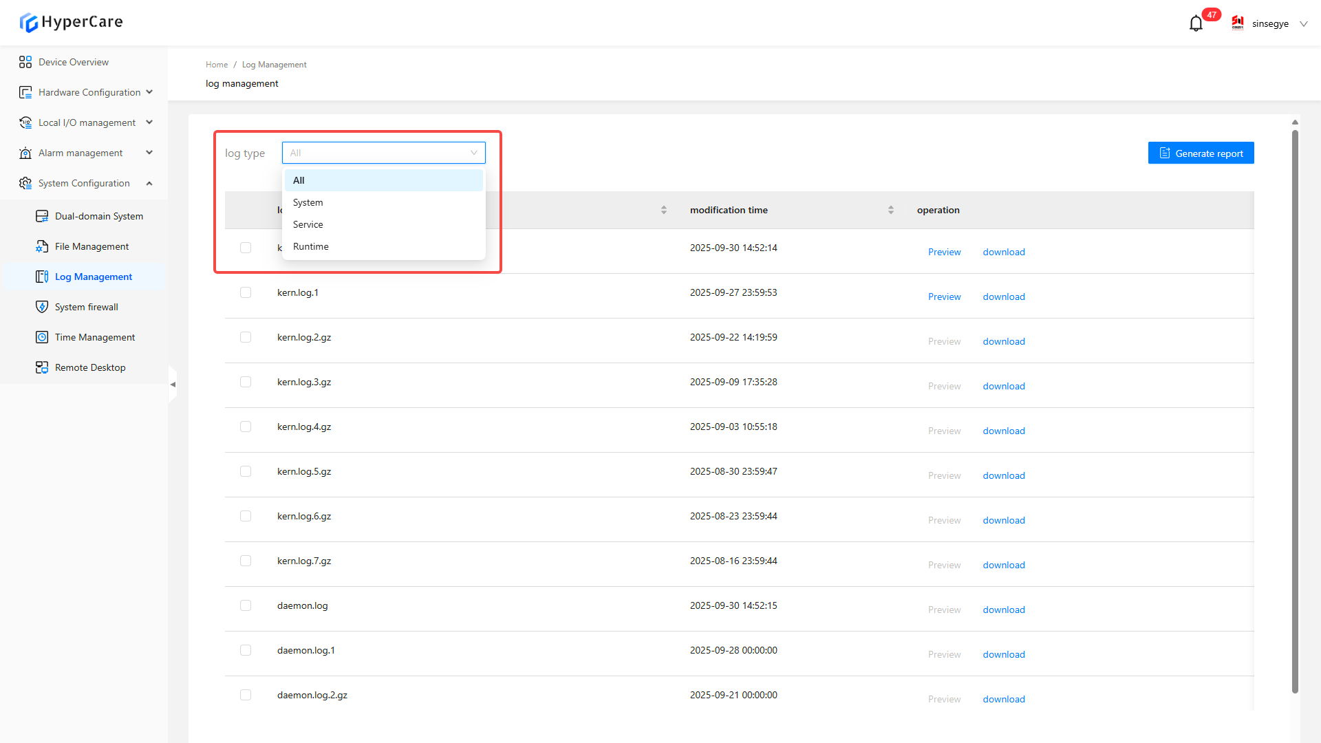 Support sorting by \[Log Name] or \[Modification Time]. Click the \[Arrow] button to toggle the sorting modes.