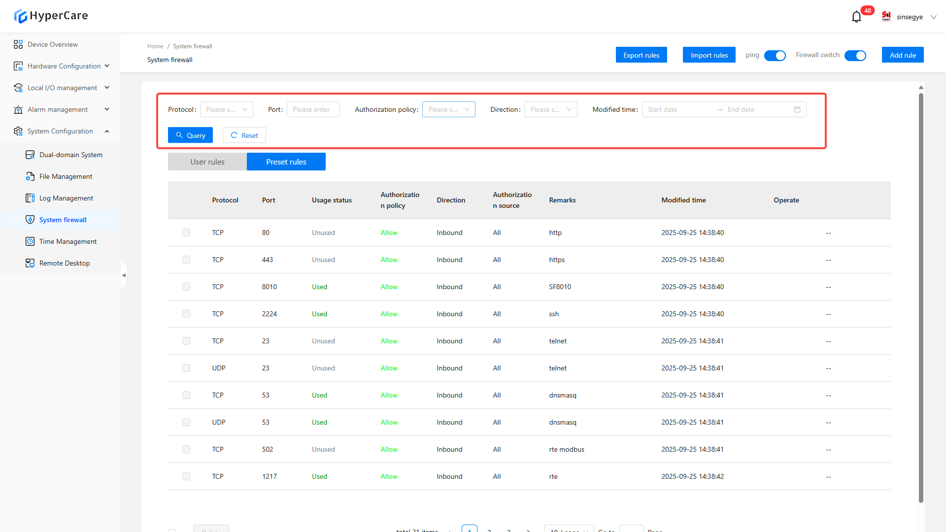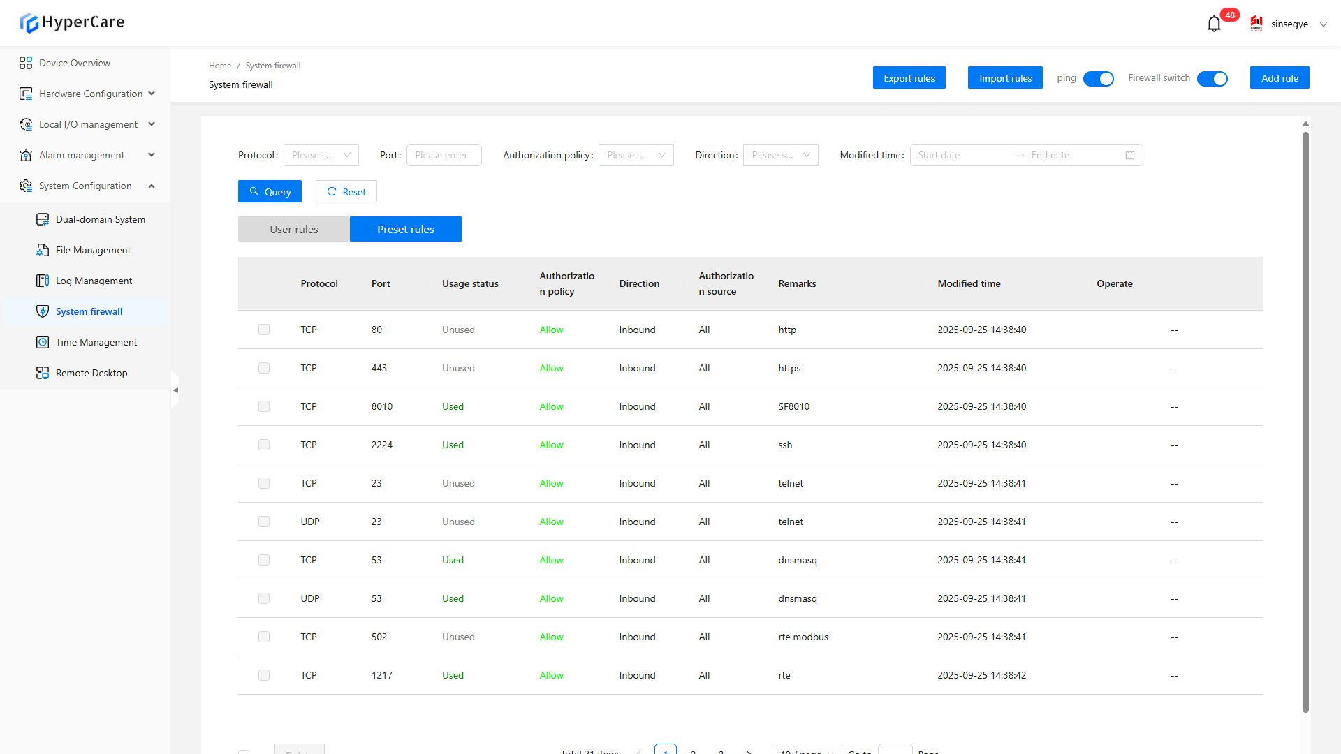 aoiservice dependency module | aoiservice is an automated operation interface service that provides functions for automatic configuration, monitoring, and management of the device. It can automatically execute operations based on preset conditions, diagnose device issues, or provide relevant logs when failures occur. This component is particularly important for large-scale device management, and it can improve work efficiency and reduce manual intervention. |