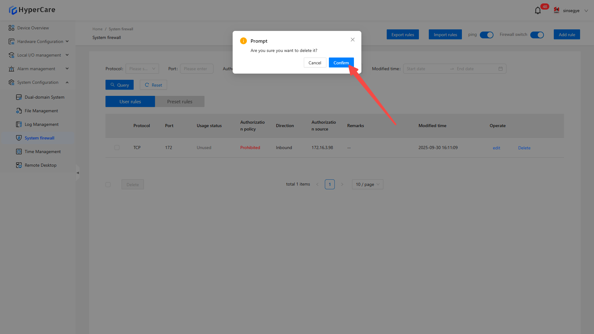 After clicking the \[Desktop Enable Status] switch to perform the \[OFF] operation, a confirmation prompt will pop up.