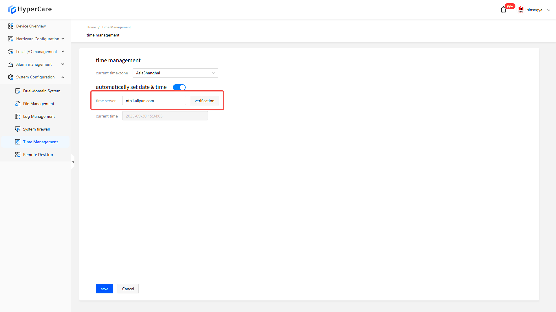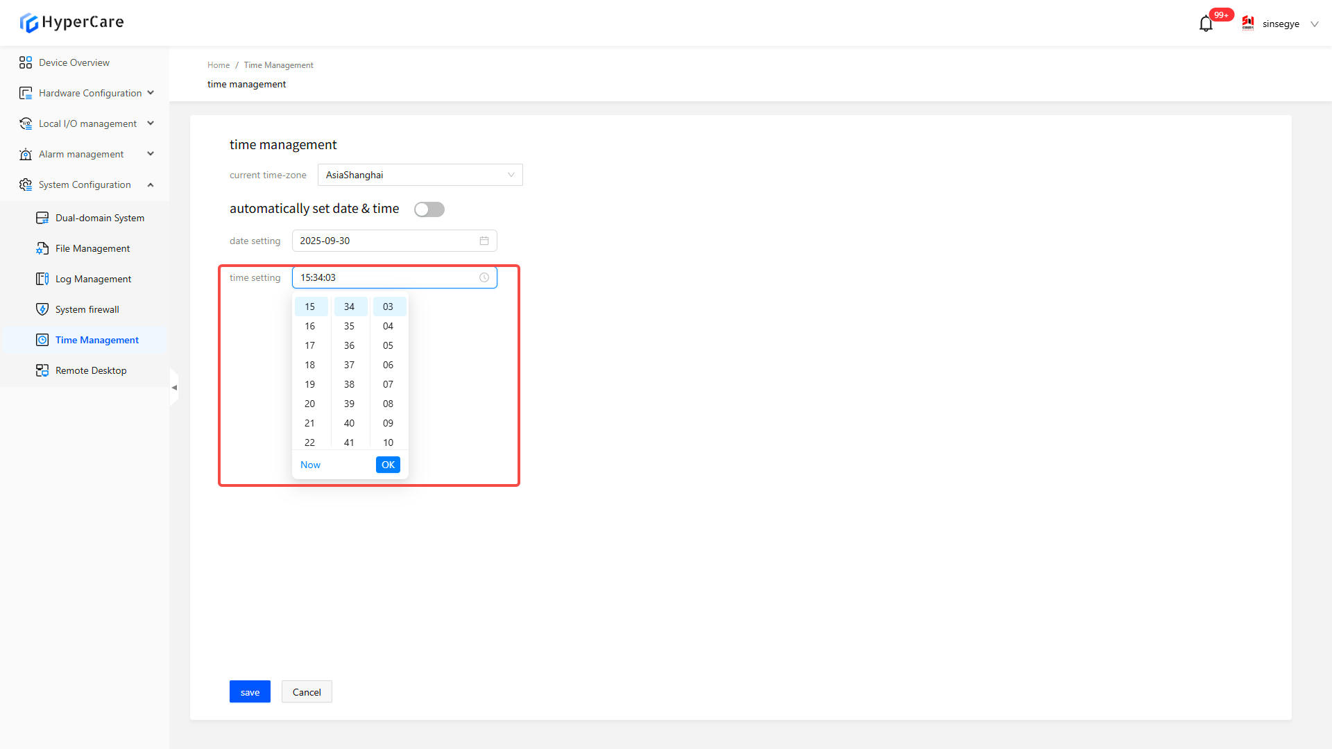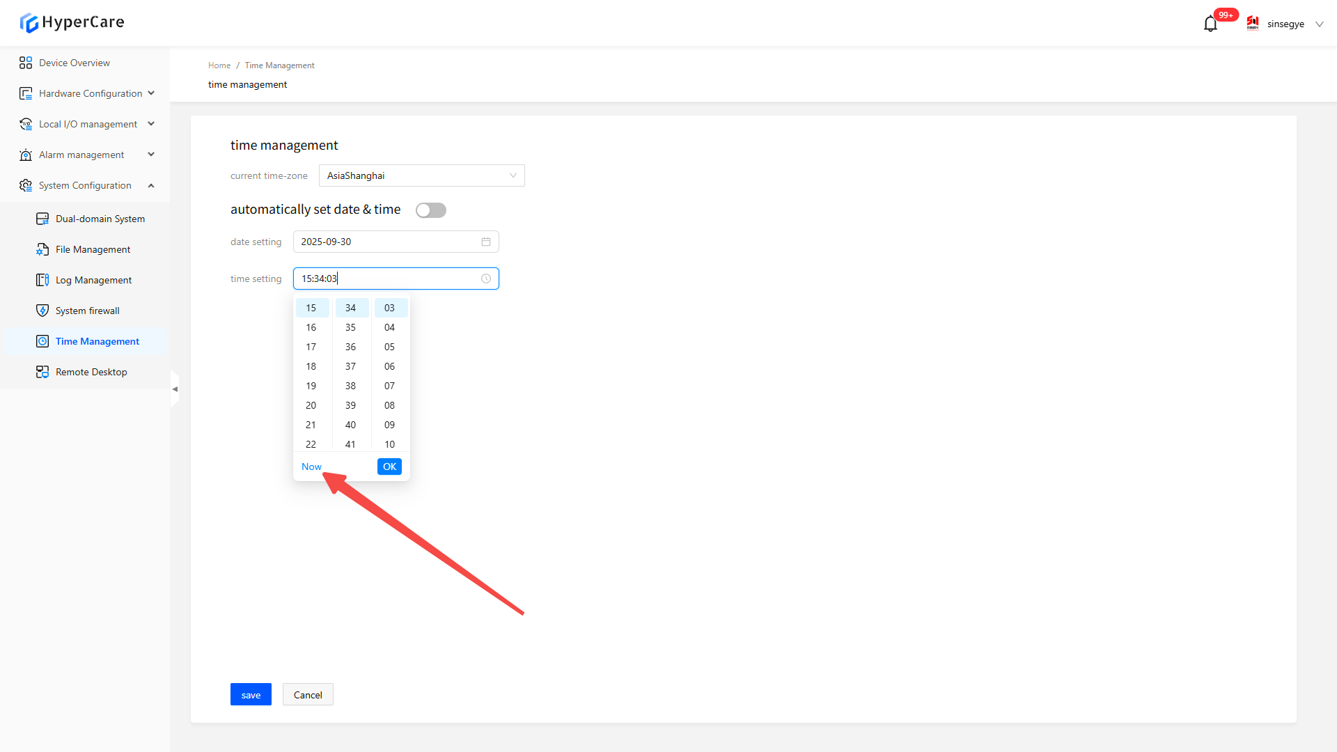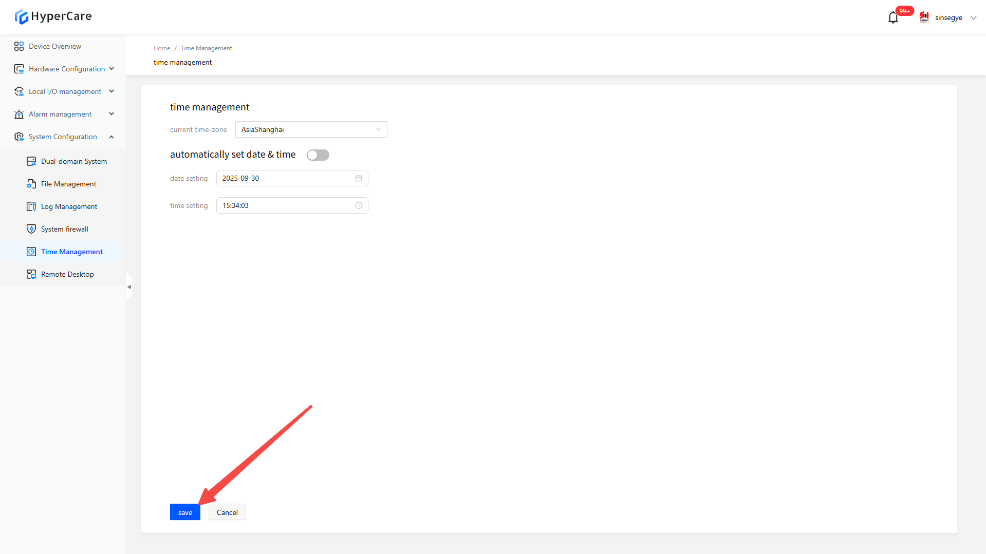 Even if only partial configurations are modified, the final effective settings are determined by the time zone, date, and time displayed on the page, and the modification must be confirmed by clicking \[Save].