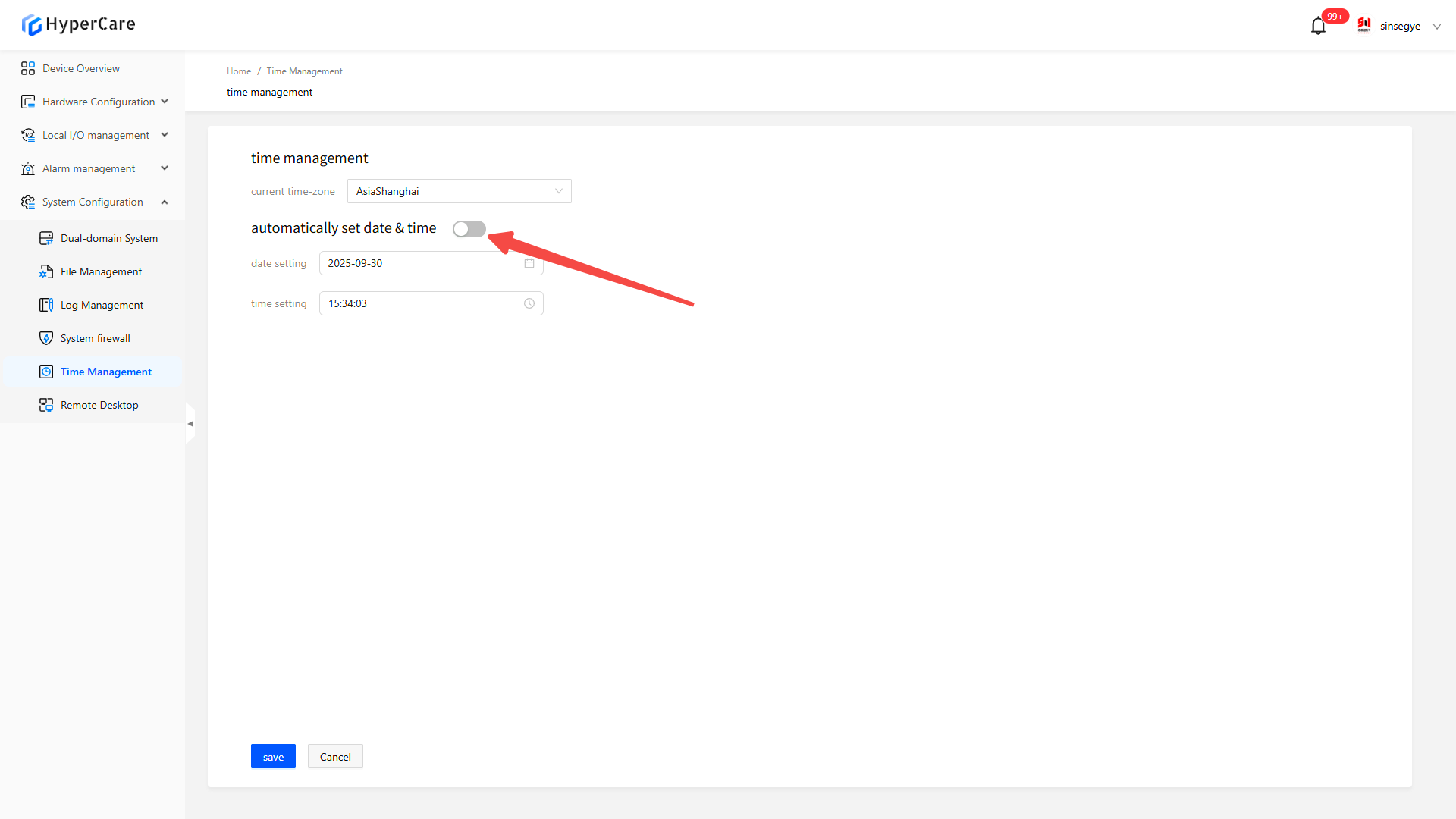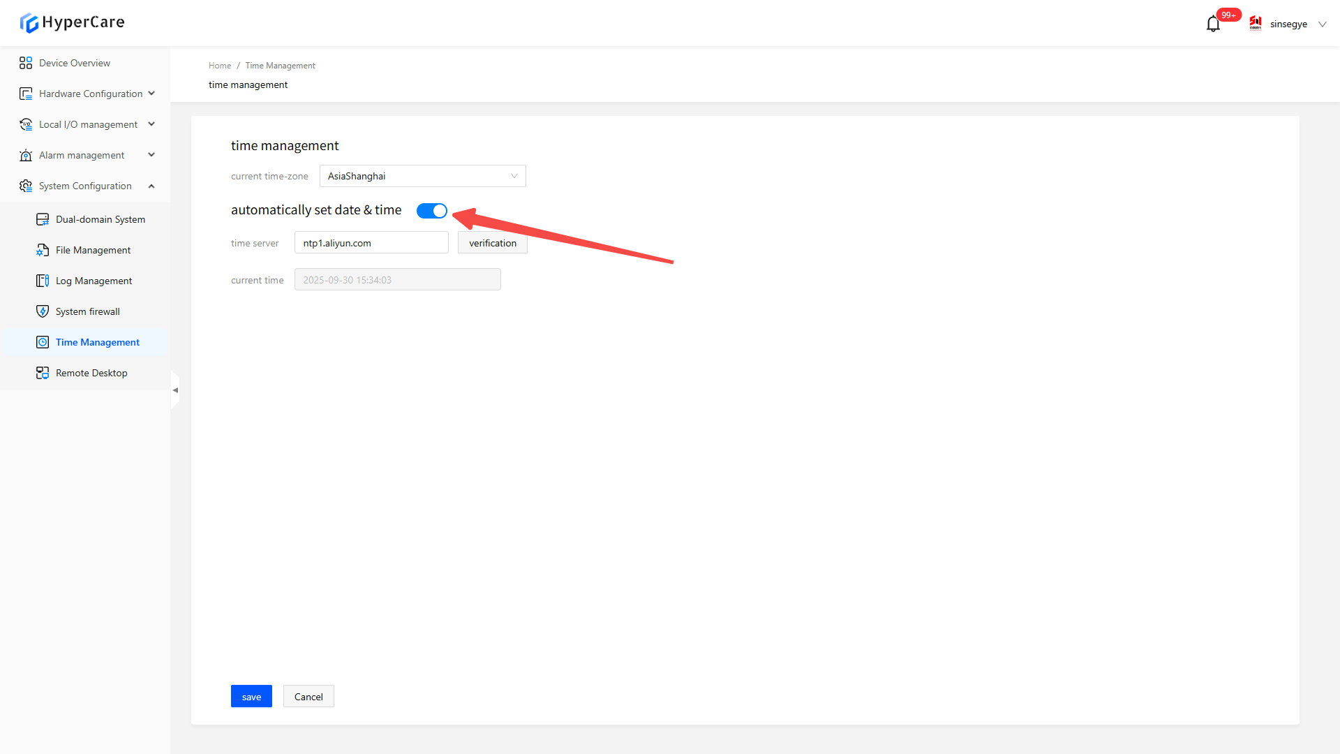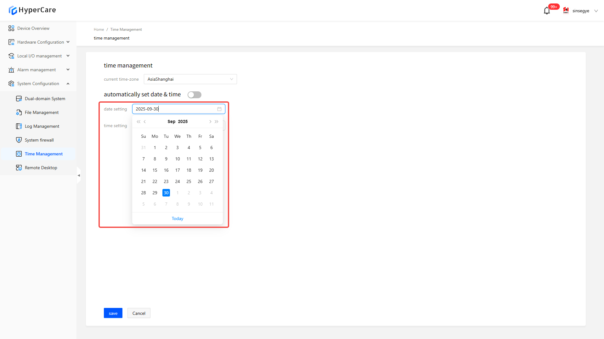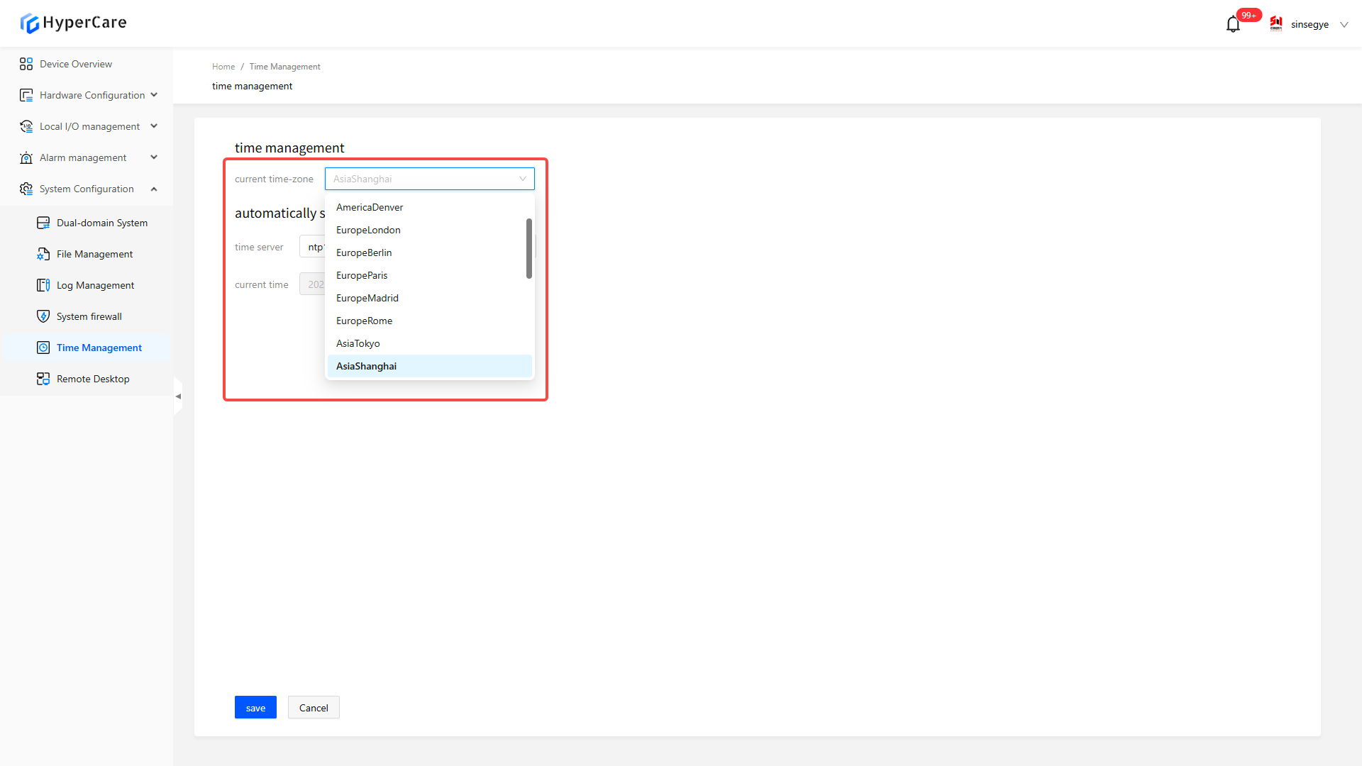 Even if only partial configurations are modified, the final effective settings are determined by the time zone, date, and time displayed on the page, and the modification must be confirmed by clicking \[Save].