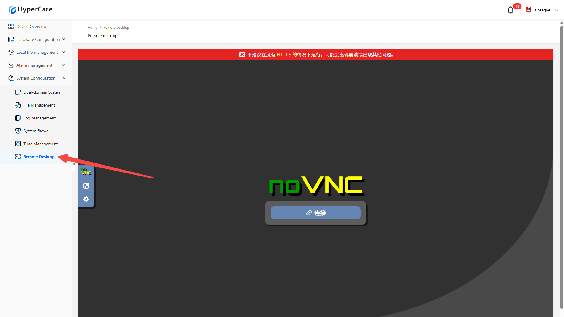 This function is used for the user to directly operate the graphical interface of the remote host on local terminal device through network