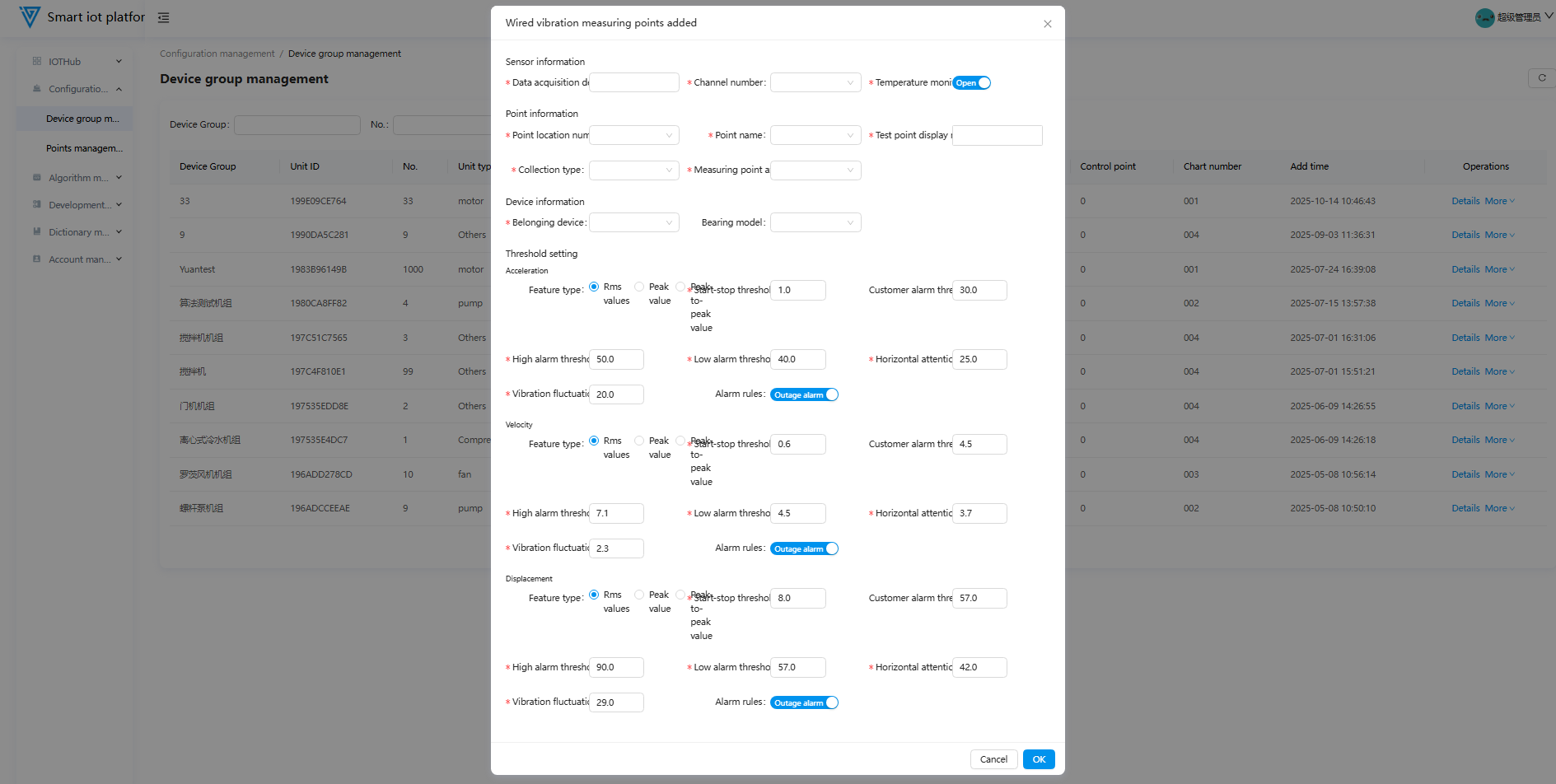 The monitoring unit supports the acquisition of 8/16-channel acceleration-temperature integrated sensors. The acceleration-temperature integrated sensor is a three-wire type, not a PT100 type. Please communicate with us in advance for relevant sensor selection.